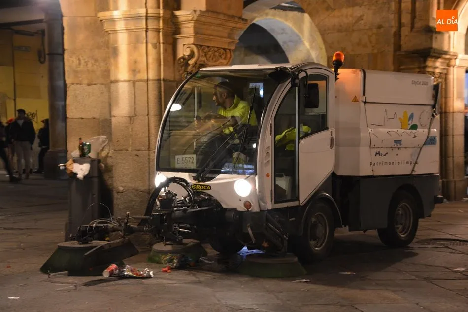 El Ayuntamiento de Salamanca puso en marcha un servicio especial de limpieza que reforzó el personal y la maquinaria con más de una veintena de vehículos como barredoras, fregadoras, baldeadoras y camiones de recogida