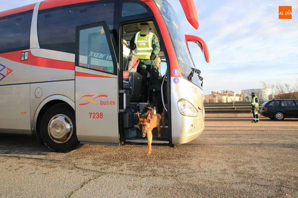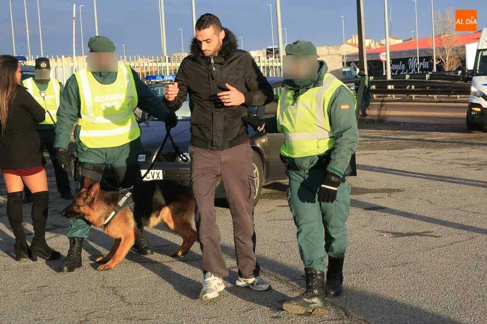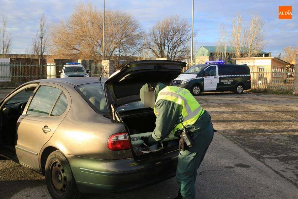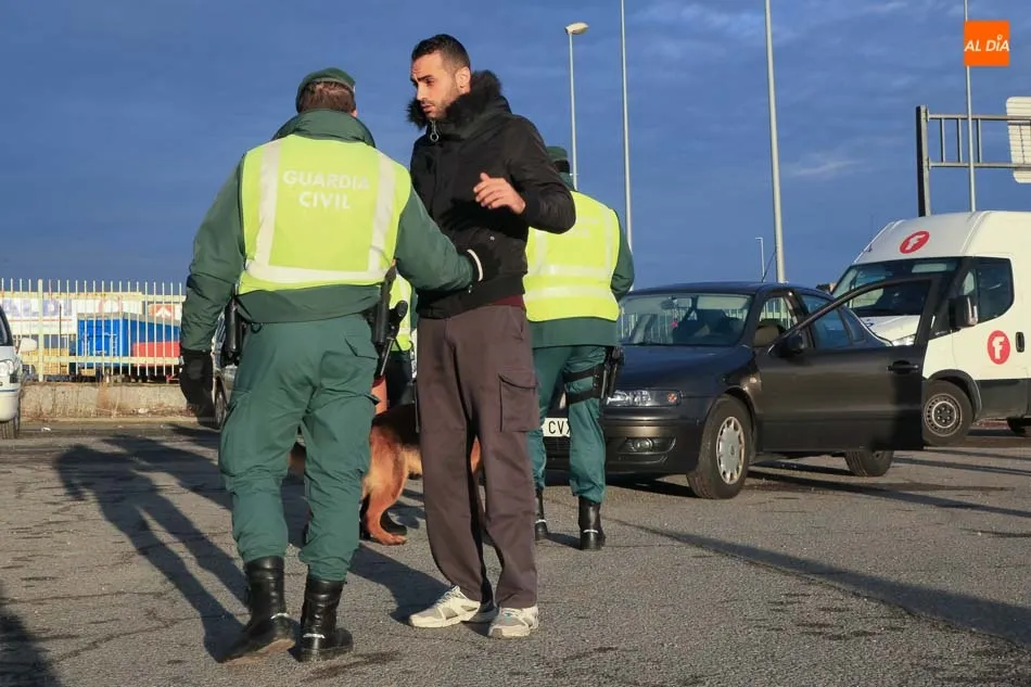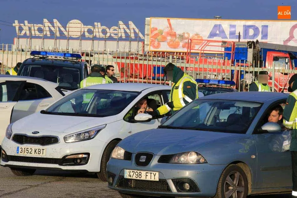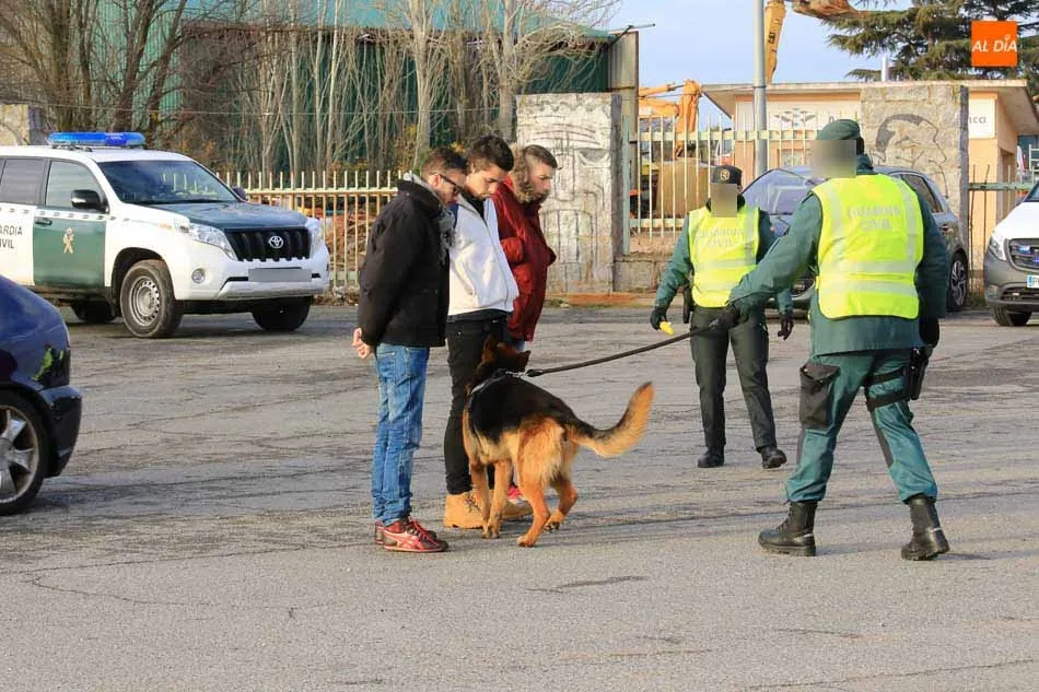 Agentes de la Guardia Civil y la Policía Local registraron vehículos con la ayuda de perros adiestrados durante toda la madrugada y a primera hora de la mañana