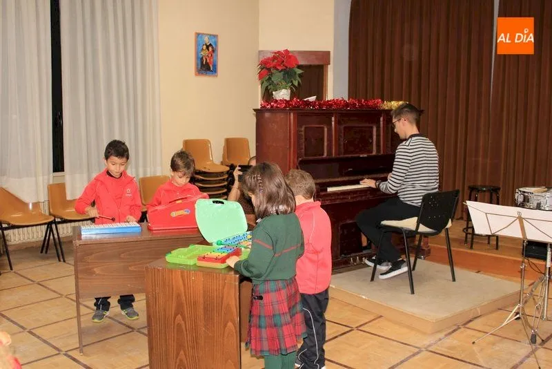Los alumnos de la Escuela de Música del colegio Calasanz realizaron su tradicional concierto de Navidad arropados por sus familiares y amigos. Los alumnos de Educación Infantil cantaron unos villancicos y realizaron un baile acompañados por algunas de sus madres.