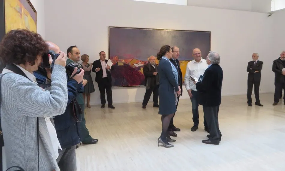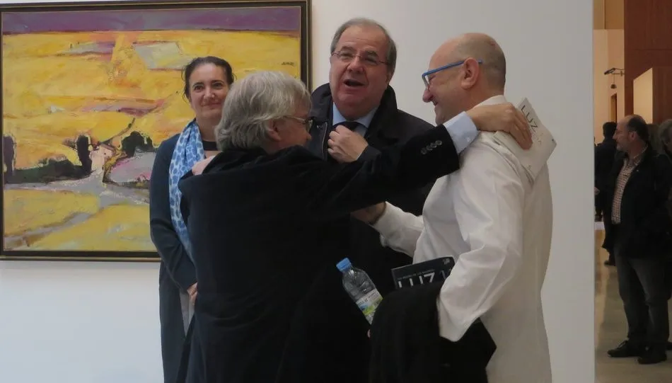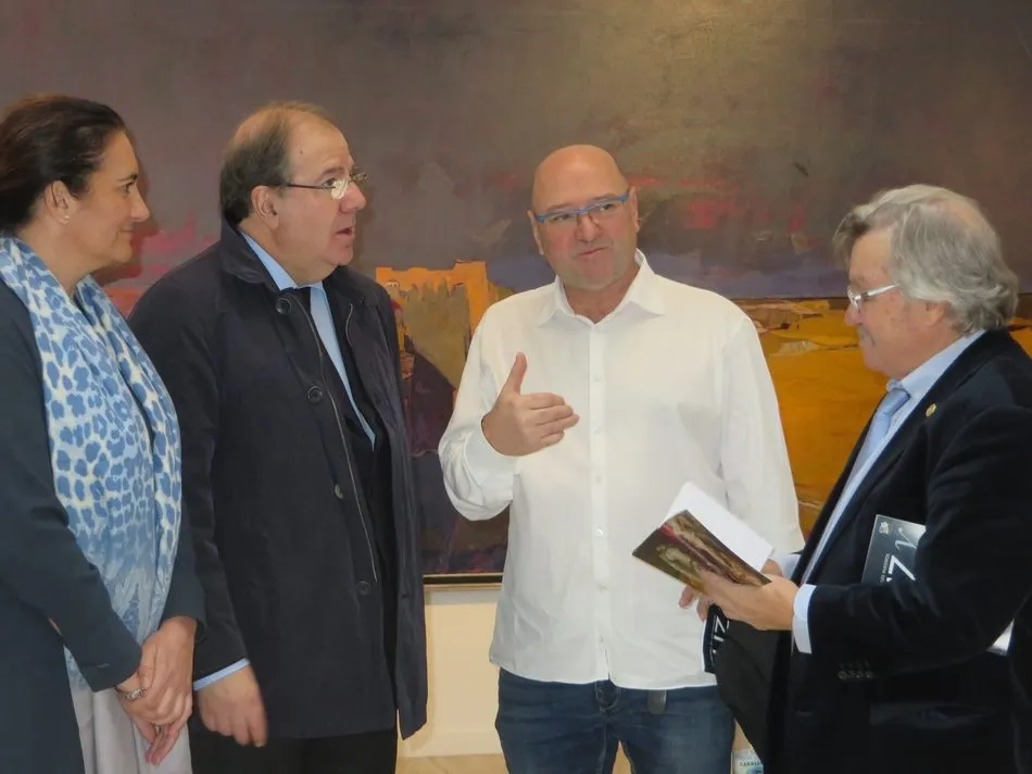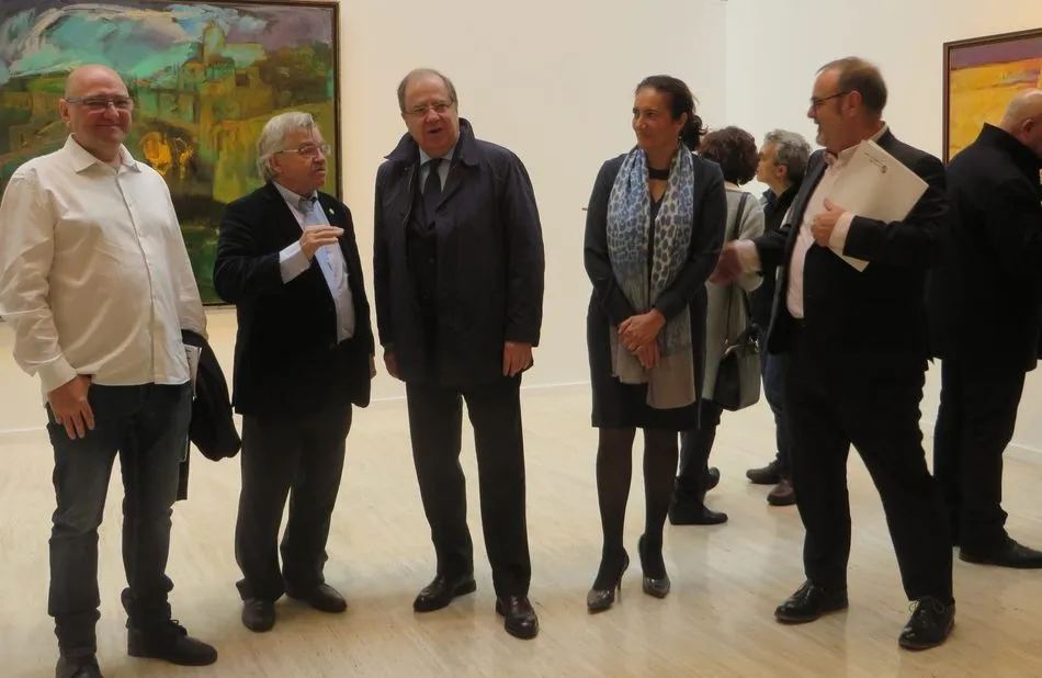 A las 12h, y ya en Valladolid y en la Sala de Exposiciones del Monasterio de Nuestra Señora de Prado, sede de la Consejería de Cultura de la Junta de Castilla y León, el presidente Juan Vicente Herrera inauguró la exposición ?Los mejores de los nuestros. Luz y Paciencia en los Premios Castilla y León de las Artes?, que tiene como comisario a Fernando García Malmierca. Esta magna exposición, que estará abierta hasta el 28 de febrero de 2019, incluye obras cuatro obras de José Carralero en un recinto especial, entre las que destaca ?Urueña?, el cuadro en gran formato que se encuentra de forma permanente en la sede de las Cortes de Castilla y León. También se podrán apreciar obras de Díaz-Caneja, el primero en obtener el premio en 1984, hasta Ángela de la Pisa, ganadora del premio en 2015. A estos palentinos se les suman Baltasar Lobo, Vela Zanetti, Luis Sáez, Esteban Vicente, Modesto Ciruelos, Cristobal Gabarrón, José María Castilviejo, Ana Jiménez, José María Mezquita, Enrique Seco, José María Cuasante y los salmantinos José Núñez Larraz, Venancio Blanco y Ángel Mateos
