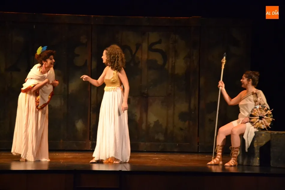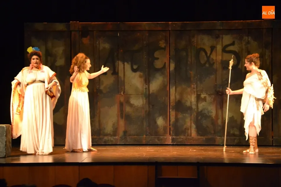 En esta obra se relata la huelga de sexo en la que se declararon las mujeres con el objetivo de que sus hombres llegasen a firmar la paz. Esta revisión a cargo de Las niñas de Cádiz llegó en tono de comedia, invitando a las risas al centenar de personas que se congregaron en la tarde sabatina en el Teatro Nuevo.
