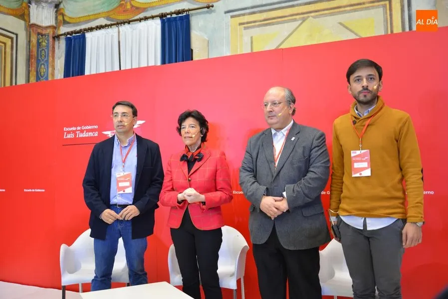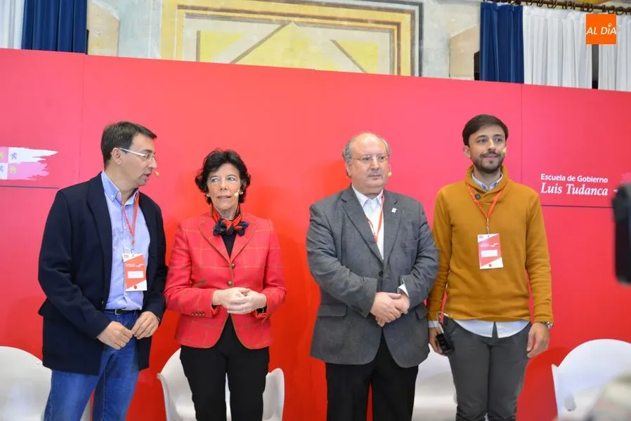 La ministra de Educación y Formación Profesional, María Isabel Celaá, ha presidido este sábado el Programa de la Escuela de Gobierno del PSOE de Castilla y León, celebrado durante esta mañana en el Colegio Arzobispo Fonseca. Durante la jornada, Celaá estuvo acompañada por el secretario general del PSOE de Salamanca, Fernando Pablos Romo; el secretario general de Juventudes Socialistas de Castilla y León, Francisco Díaz y el vicerrector de Política Académica y Participación Social de la Universidad de Salamanca, Enrique Cabero.