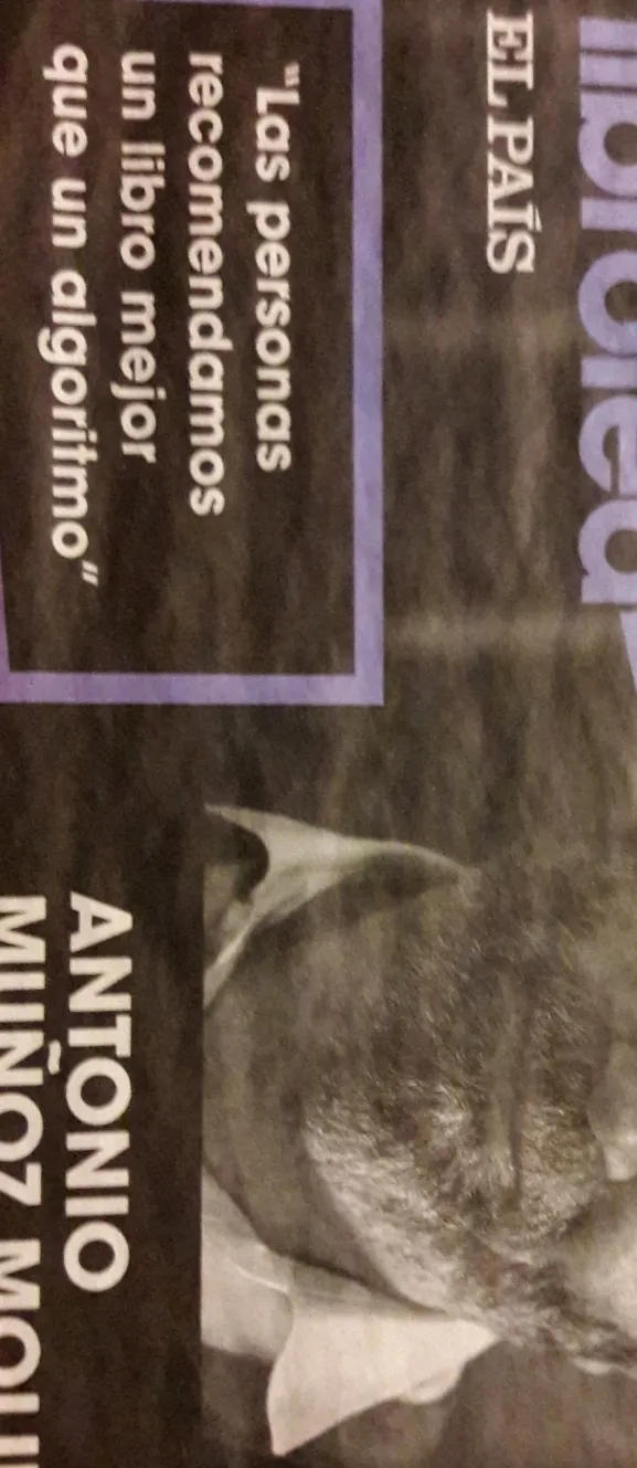 A toda plana, y utilizando la fotografía del rostro de un escritor, un bailarín o una conocida actriz, una página digital de venta de libros destaca en grandes caracteres, recuadrada, entrecomillada y como poniéndola en boca del famoso, la siguiente frase: ?Las personas recomendamos un libro mejor que un algoritmo?. Es de suponer que la intención publicitaria de la frase es imbuir al comprador de la idea de que en la susodicha página de venta encontrará consejos de compra de libros realizados por vendedores de carne y hueso (quizás no los de los famosos de la foto), en lugar de una aleatoria y fría lista de recomendaciones realizada por un algoritmo cuyos outputs (consejos) respondan a desalmadas variables suministradas por un helado cálculo matemático de rastrero interés mercantil, en lugar del aliento humano y la mirada que te susurre parpadeando el título del libro... con idéntico interés mercantil.
