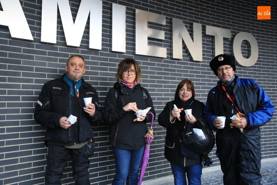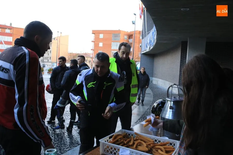 Moteros de Salamanca se han concentrado este sábado en la plaza de la Iglesia de Santa Marta para disfrutar de una jetada organizada por A2 Ruedas. Durante al actividad, los participantes disfrutaron de una chocolatada que acompañaron con churros. La jornada ha tenido un fin benéfico, el dinero recaudado se destinará a las Carmelitas Teresas de San José.
