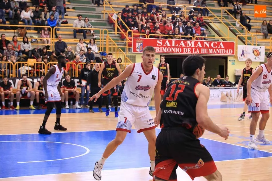 El equipo salmantino ?hizo la goma? durante todo el choque, pero al final fue inferior a los riojanos, con un ambiente espectacular en el pabellón