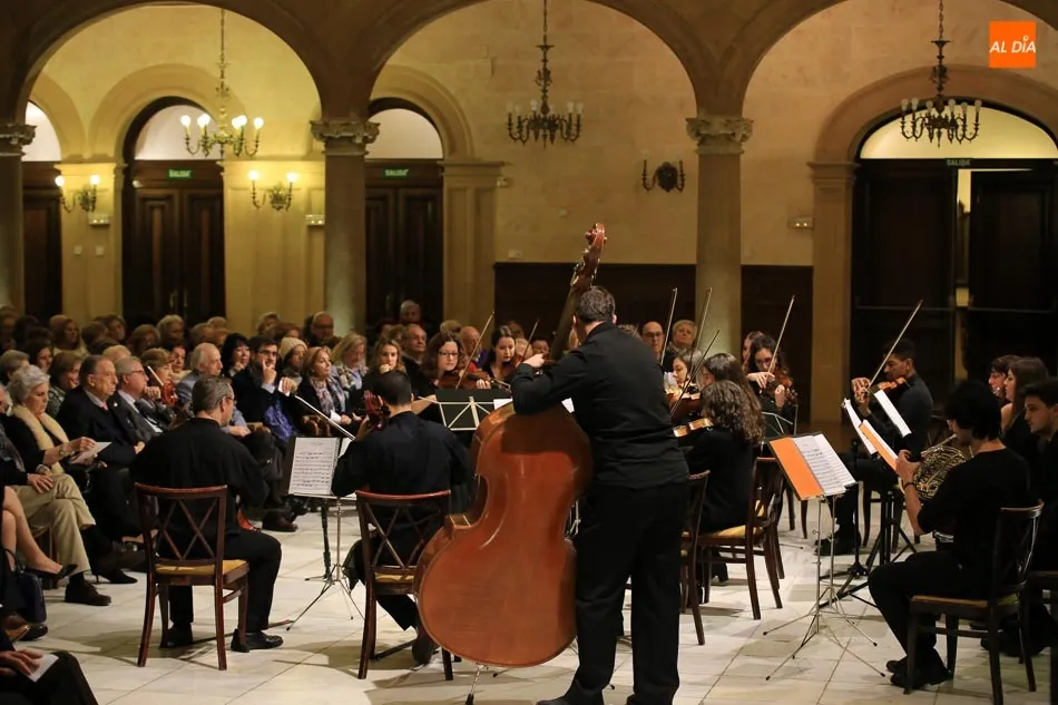 El Patio Neorrenacentista del Palacio de Figueroa ha sido escenario este domingo del tradicional Concierto de Fin de Año de la Orquesta de Cámara del Casino de Salamanca que ha incluido un atractivo repertorio en el que los valses y polkas de Johann Strauss hijo han sido protagonistas.