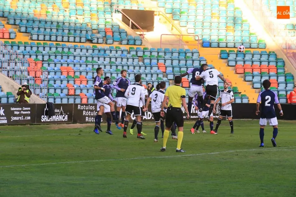 Tras la reanudación, el guión no cambió y el Salamanca UDS estuvo a merced del cuadro dirigido por Miguel Rivera. Salusi, en boca de gol, tuvo en su cabeza la oportunidad de desequilibrar la balanza, pero su remate bajo palos se marchó por encima del travesaño de la portería charra. Calderón intentó cambiar el ritmo del partido y decidió apostar por Júnior, que acumulaba cuatro partidos sin jugar. Fue entrar el joven futbolista dominicano y, por causalidad o no, Fer Ruiz dispuso de la ocasión más clara para los blanquinegros y el Salamanca UDS se metió de lleno en el partido. Cosas del fútbol.