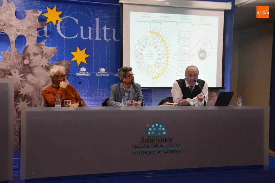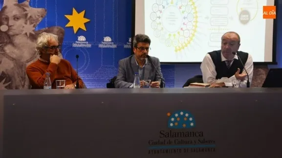 Adrián Vila ha desembarcado este lunes en la ciudad de Salamanca para presentar su nueva obra El canon oculto. El escritor y profesor argentino estuvo acompañado por el catedrático de la Universidad de Salamanca, José Antonio Cordón, y por el editor José A. Sánchez Paso en la Sala de la Palabra del Teatro Liceo.