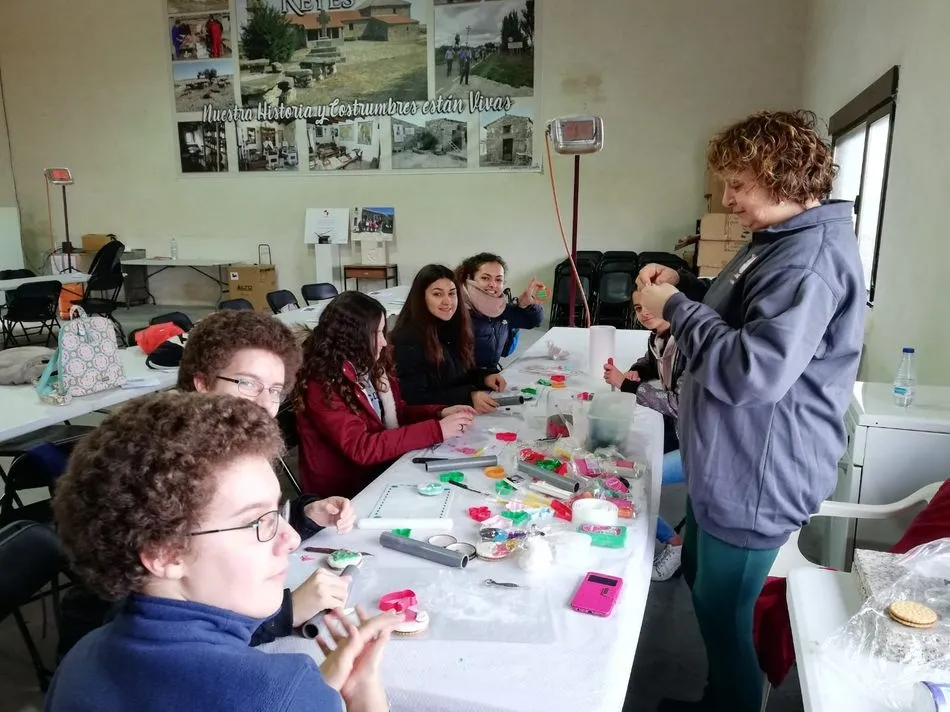 La primera actividad de esta jornada comenzaba a las 9.30 horas con una visita guiada, descubriendo el pueblo con las historias de Evencio. Una hora más tarde participarían en los talleres relacionados con la cultura tradicional, folclore, juegos populares, repostería o madera, entre otros. Tras la comida, el recorrido era por los campos de trabajo, entre ellos el museo de la huella del tiempo, la escuela, la taberna o la barbería.