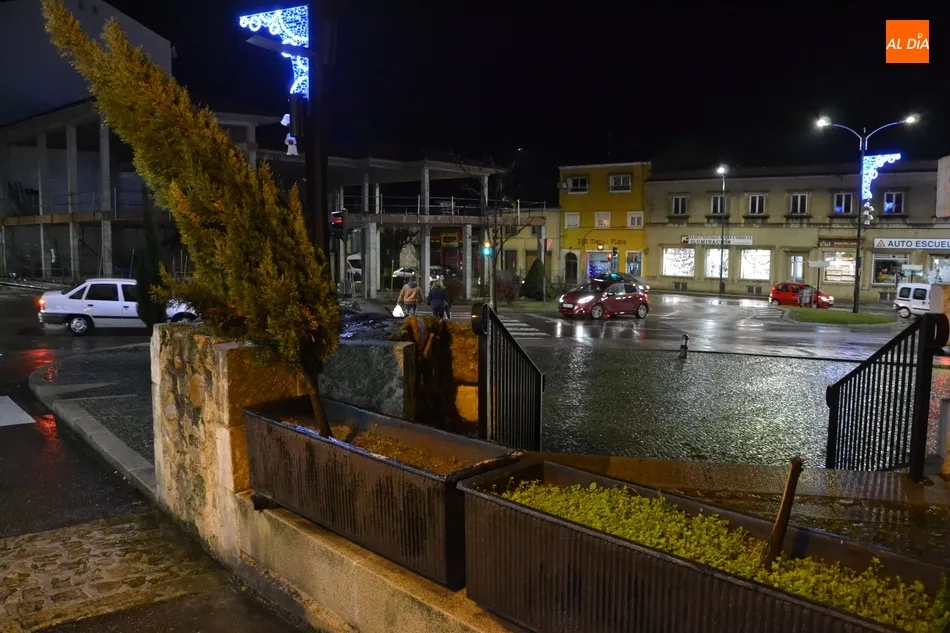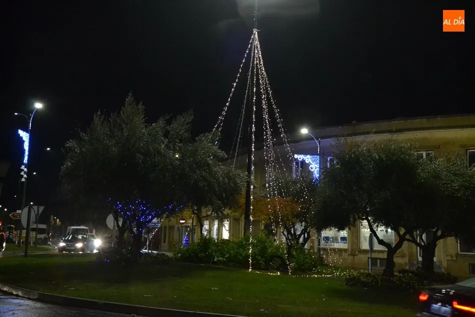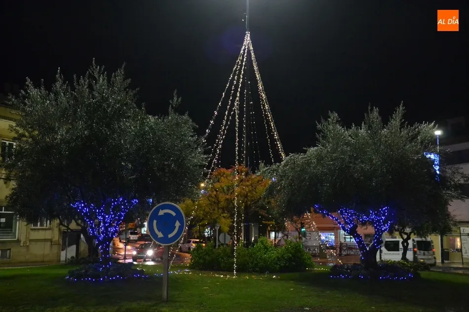 A la llegada del atardecer del martes se pudieron comprobar las consecuencias del ataque vandálico sufrido durante la noche del lunes al martes por la iluminación navideña desplegada en la rotonda del Cruce de Ciudad Rodrigo, consistente en el arrancado de varios de los cables.