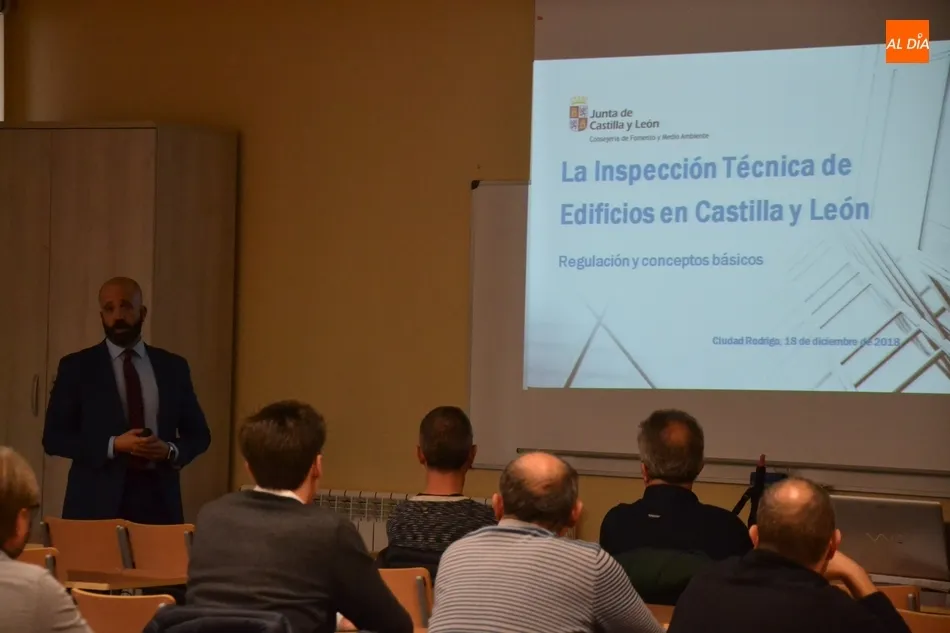 La sala principal del Edificio Educativo Municipal albergó durante la tarde del martes una jornada sobre la Inspección Técnica de Edificios convocada por el Ayuntamiento de Ciudad Rodrigo con la colaboración de la Consejería de Fomento de la Junta de Castilla y León y el Instituto de la Construcción de Castilla y León.