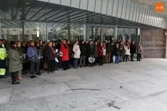 Más de un centenar de personas se han dado cita en el soportal del consistorio para honrar la memoria de la joven zamorana hallada muerta ayer