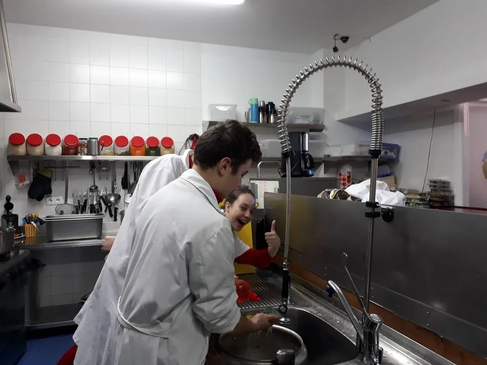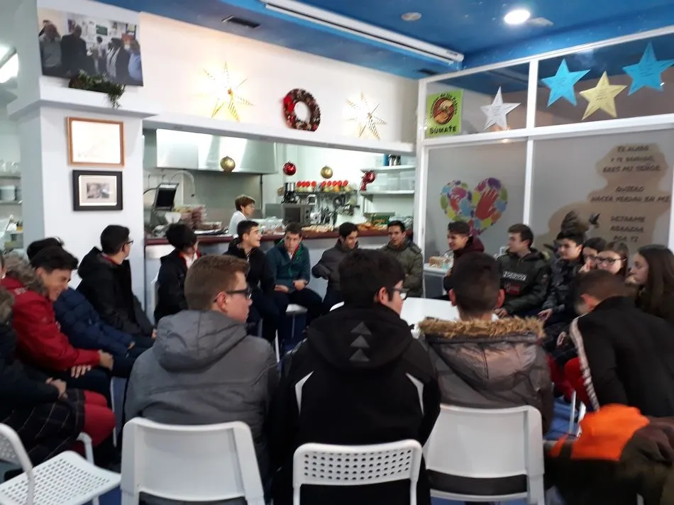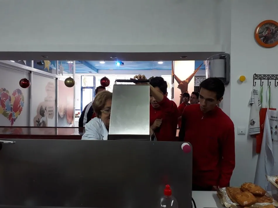 Una vez allí, visionaron un vídeo contando la historia del Comedor Social y como en numerosas ocasiones se habían tenido que reinventar para intentar conseguir fondos para seguir con su labor social. Comprobaron que había muchos voluntarios y colaborando no solo con dinero sino con su tiempo, trabajo y esfuerzo. Aprendieron que cualquier ayuda es válida y aceptada.