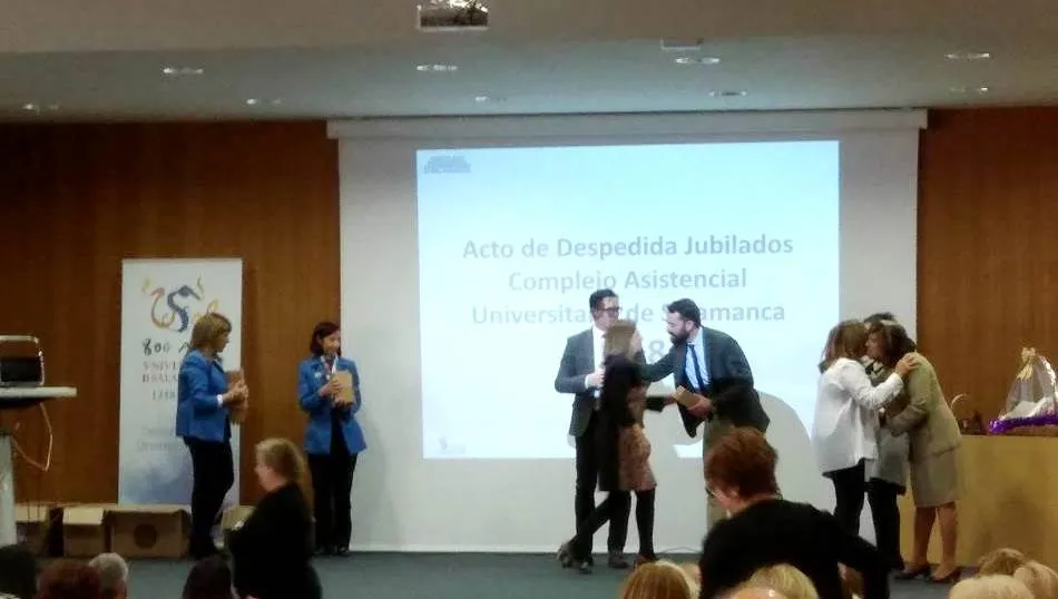 La Facultad de Biología ha acogido el acto de despedida de los jubilados del Complejo Asistencial de Salamanca. En este caso, además, estos trabajadores serán los últimos que completan su vida laboral en el actual edificio del Hospital Clínico, que será derribado en 2019.