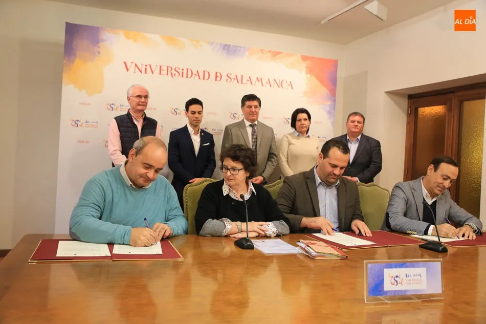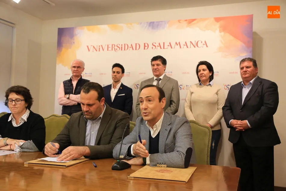 En la firma de los acuerdos estuvieron presentes la vicerrectora de Docencia y Evaluación de la Calidad de la Universidad de Salamanca, Izaskun Álvarez Cuartero; el decano de la Facultad de Medicina, Francisco Javier García Criado; el gerente de la Clínica Odontológica de la USAL, Javier Flores; así como los alcaldes de Santa Marta de Tormes, David Mingo; de Carbajosa de la Sagrada, Pedro Samaule Martín; y de Villamayor, Manuel Gago.