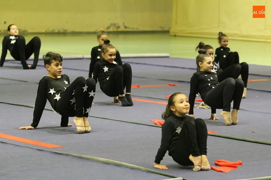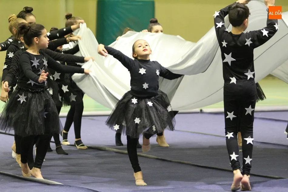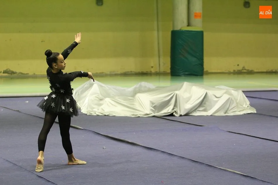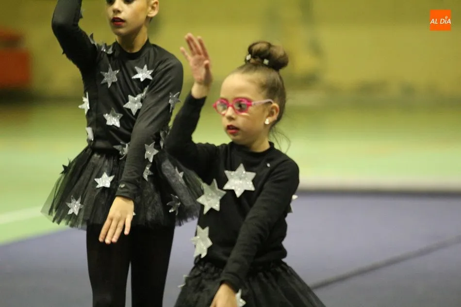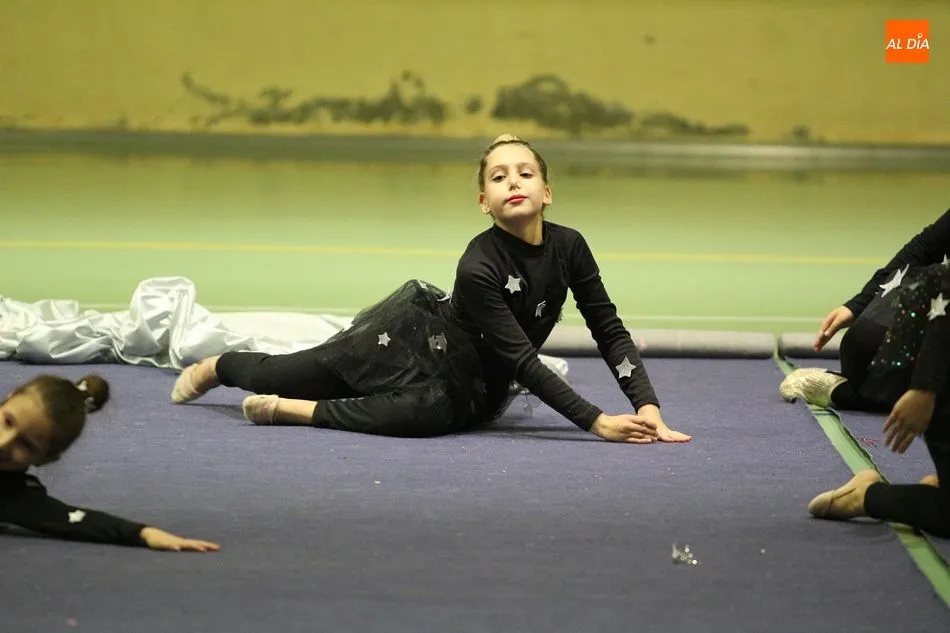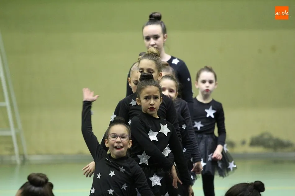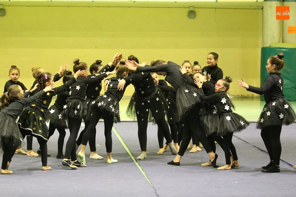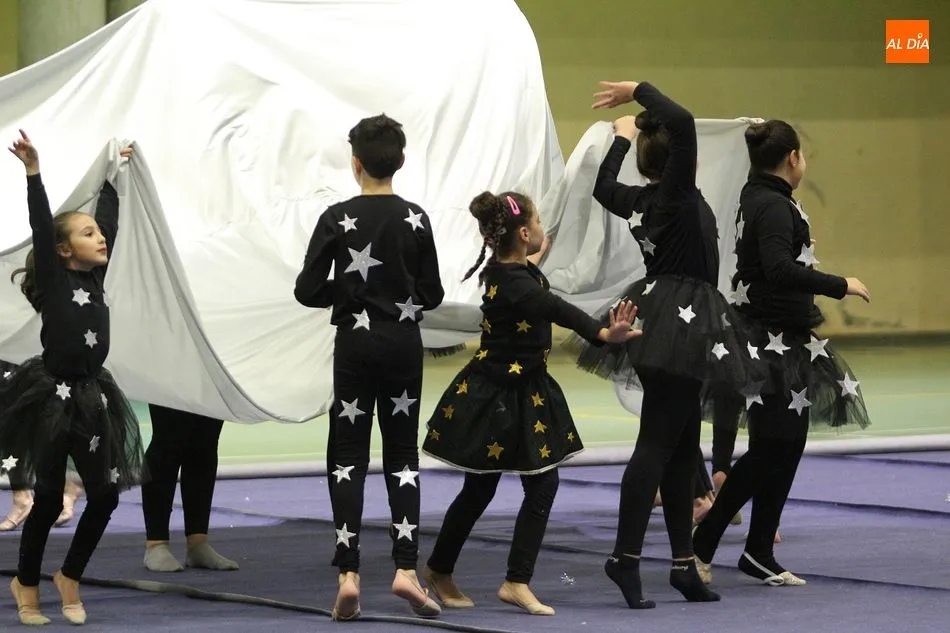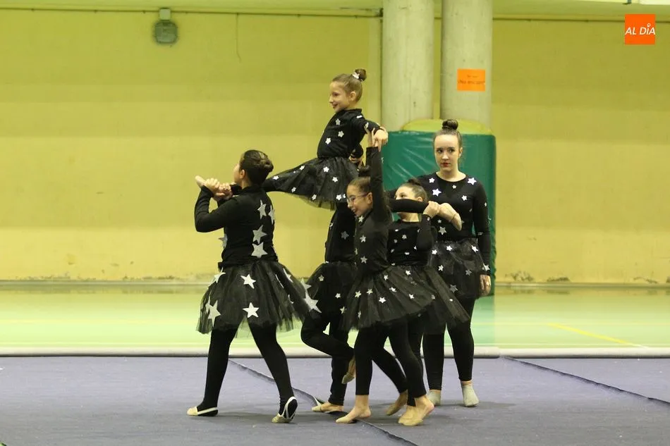 La escuela de gimnasia rítmica de Guijuelo ha ofrecido esta tarde una exhibición de Navidad en el pabellón municipal de deportes. En torno a 150 personas se han dado cita entre el público para ver a las jóvenes gimnastas realizar varios ejercicios, comenzando con unos calentamientos y más tarde un ejercicio conjunto para el grupo de pequeñas, que debutaba ante el público y a continuación las mayores.