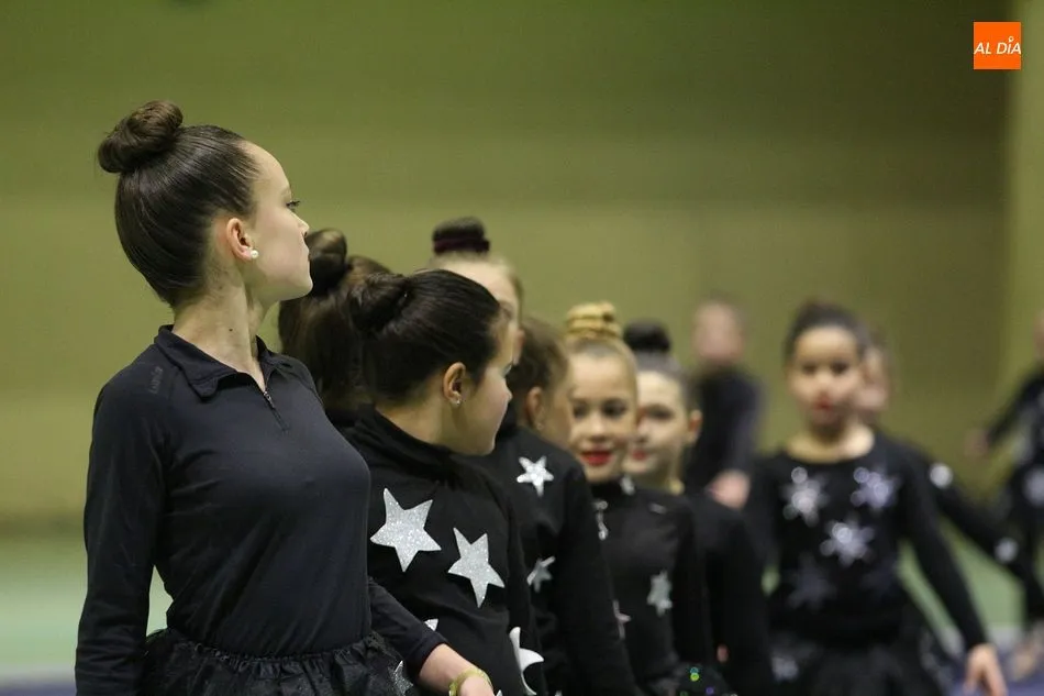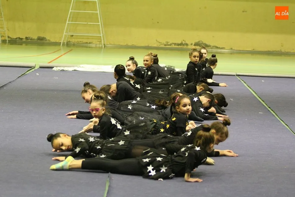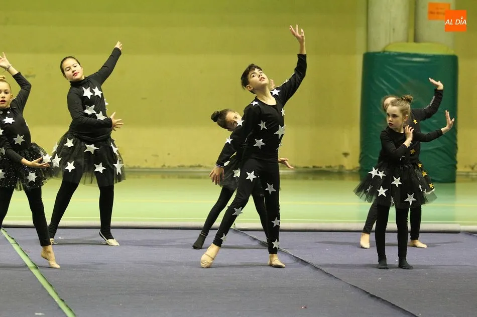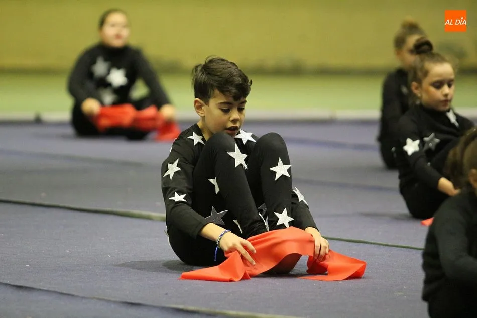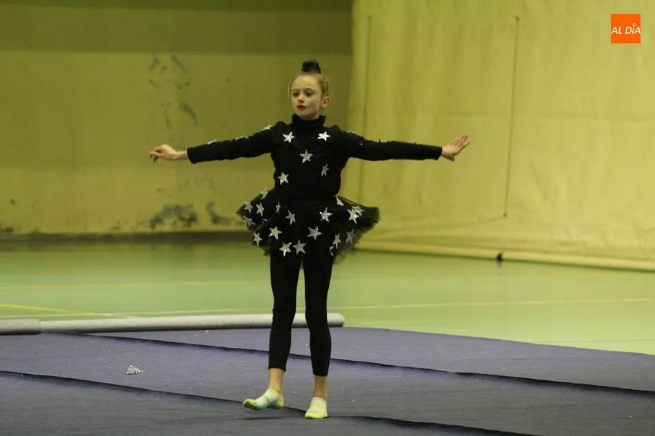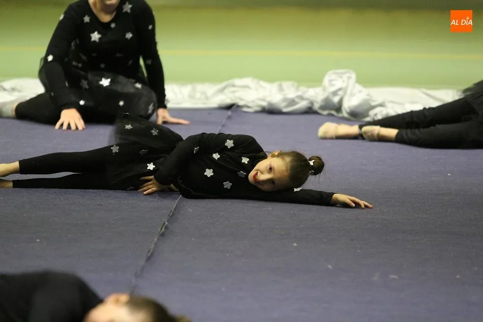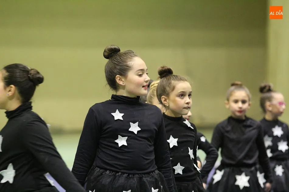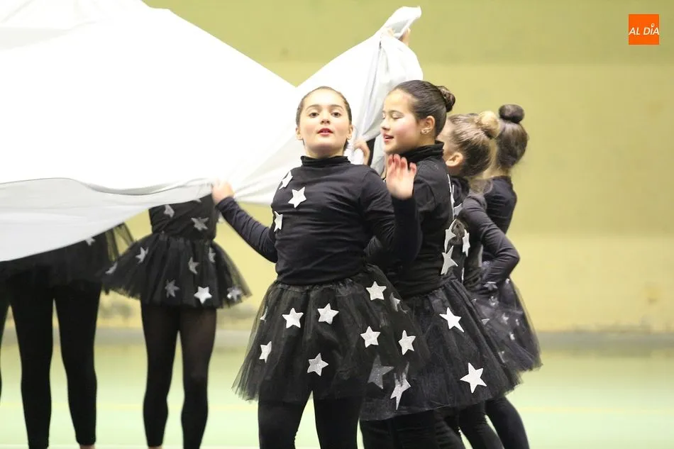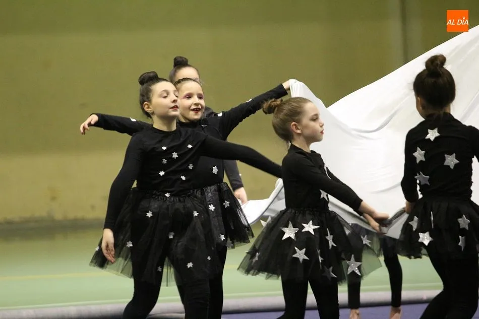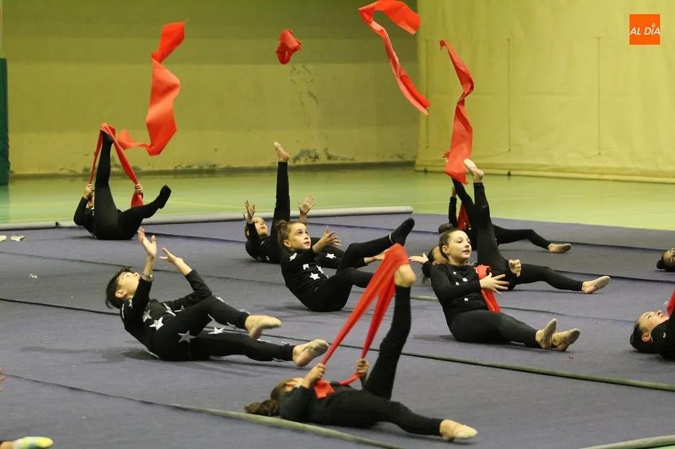 La escuela de gimnasia rítmica de Guijuelo ha ofrecido esta tarde una exhibición de Navidad en el pabellón municipal de deportes. En torno a 150 personas se han dado cita entre el público para ver a las jóvenes gimnastas realizar varios ejercicios, comenzando con unos calentamientos y más tarde un ejercicio conjunto para el grupo de pequeñas, que debutaba ante el público y a continuación las mayores.