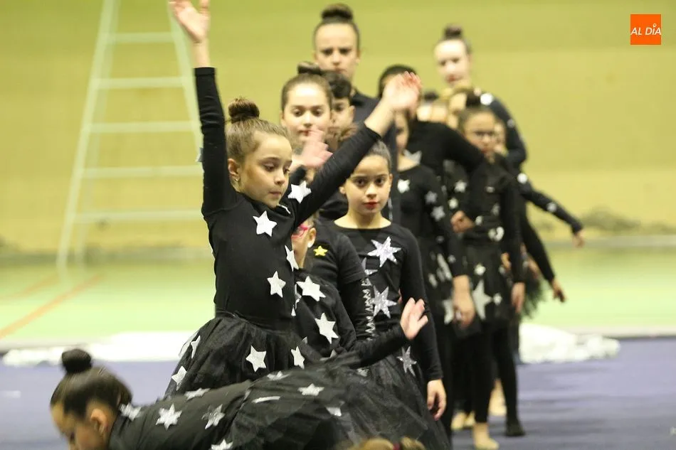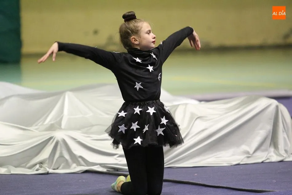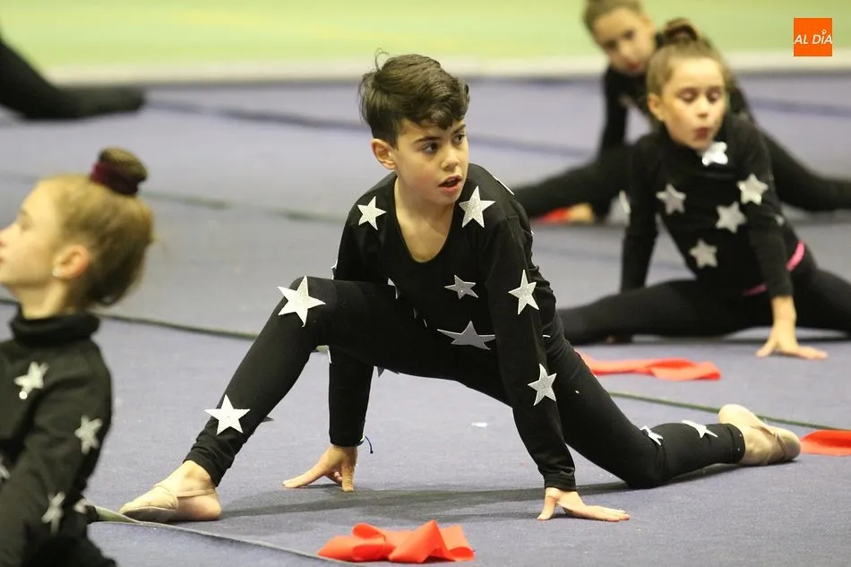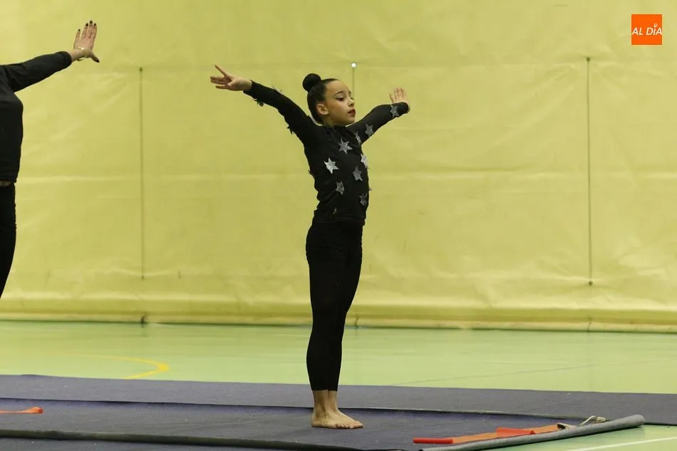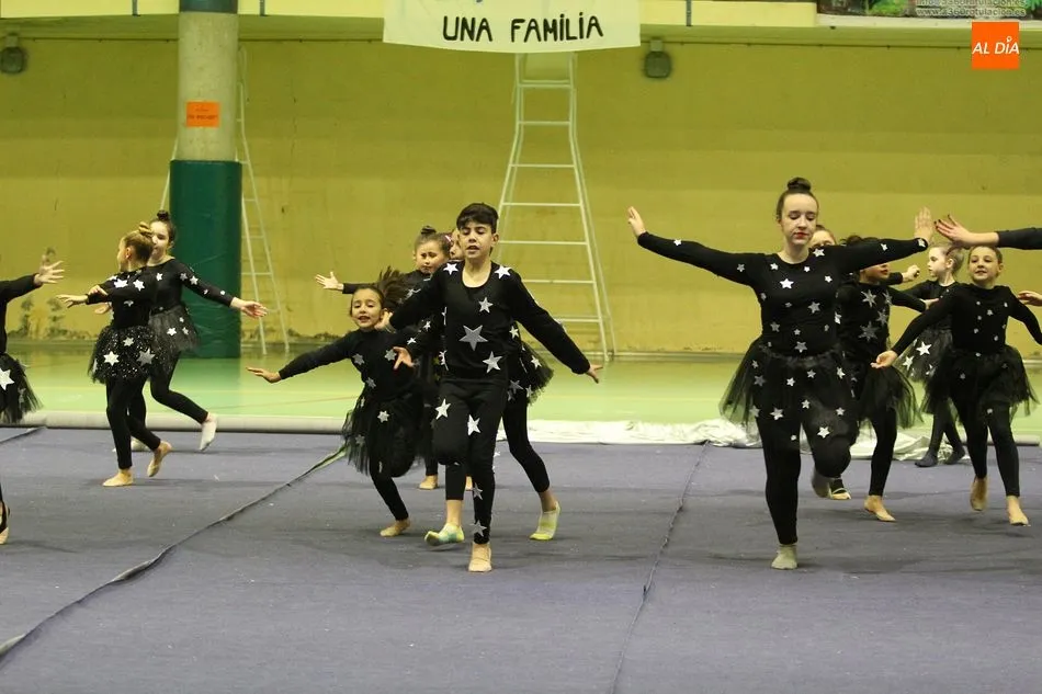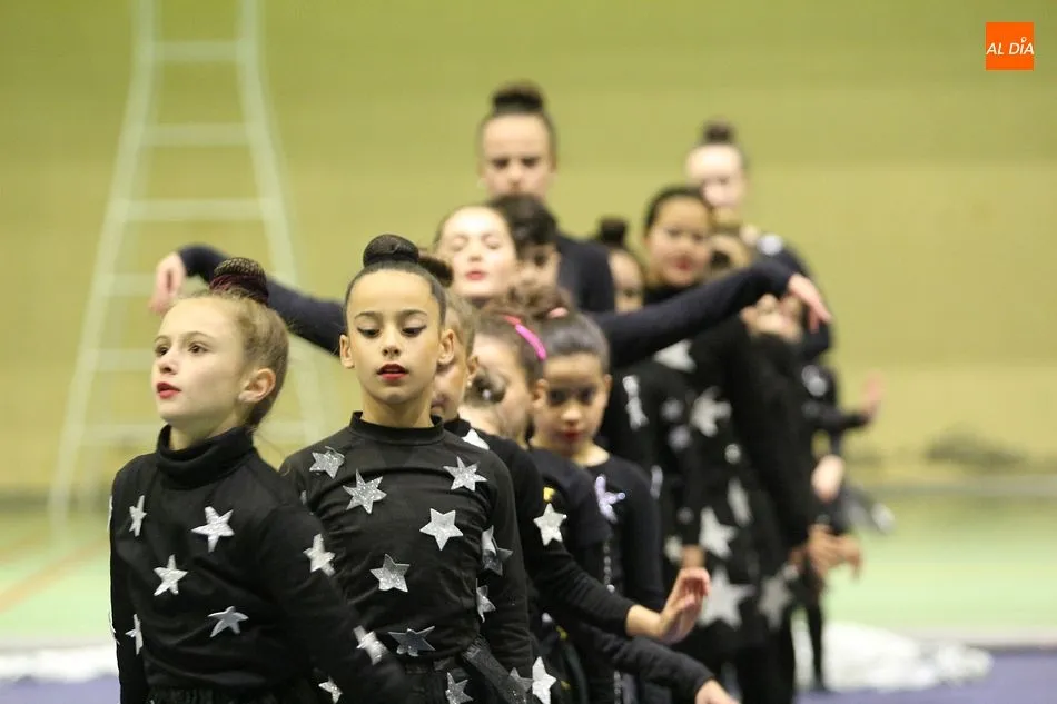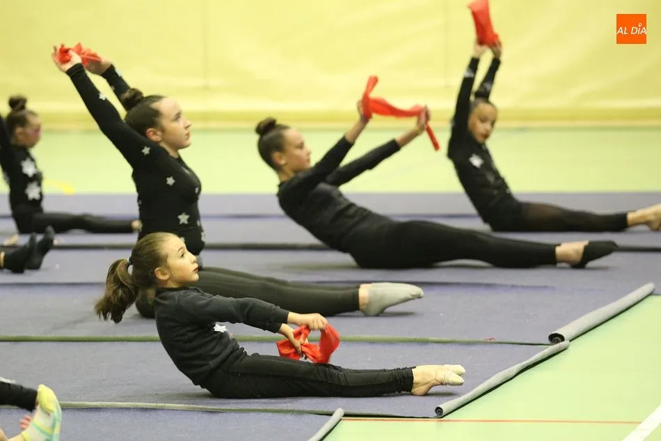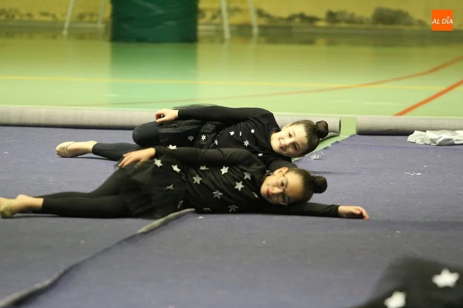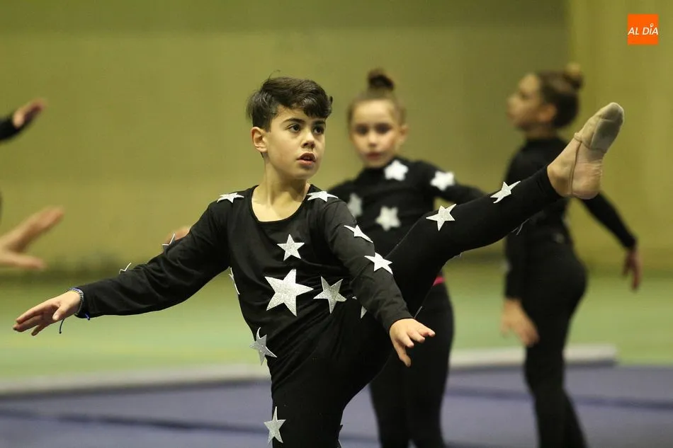 La escuela de gimnasia rítmica de Guijuelo ha ofrecido esta tarde una exhibición de Navidad en el pabellón municipal de deportes. En torno a 150 personas se han dado cita entre el público para ver a las jóvenes gimnastas realizar varios ejercicios, comenzando con unos calentamientos y más tarde un ejercicio conjunto para el grupo de pequeñas, que debutaba ante el público y a continuación las mayores.