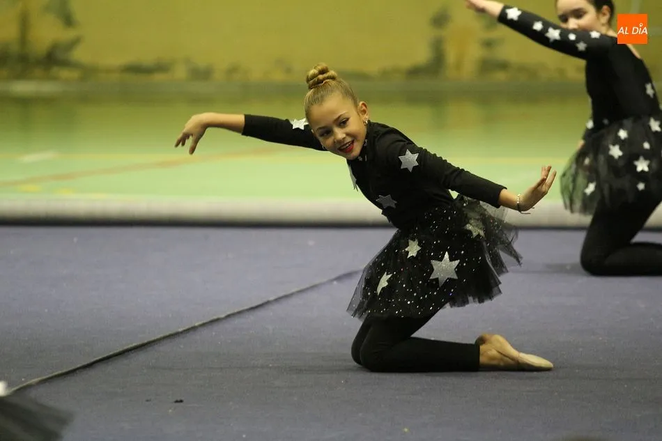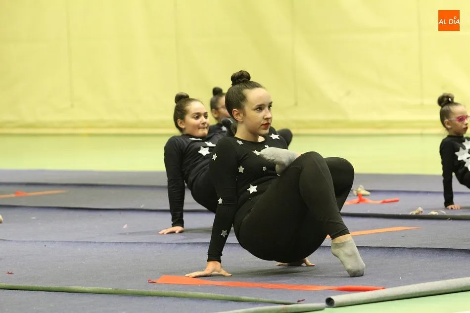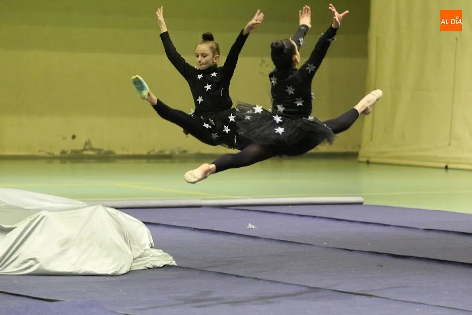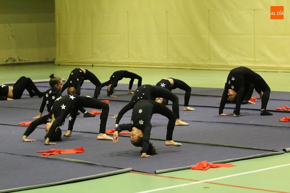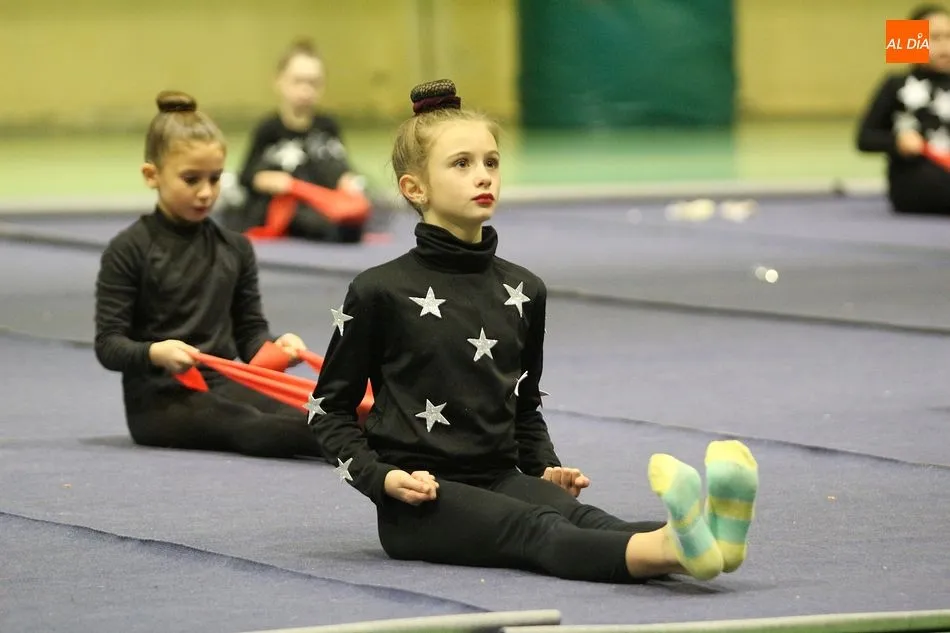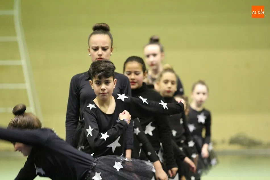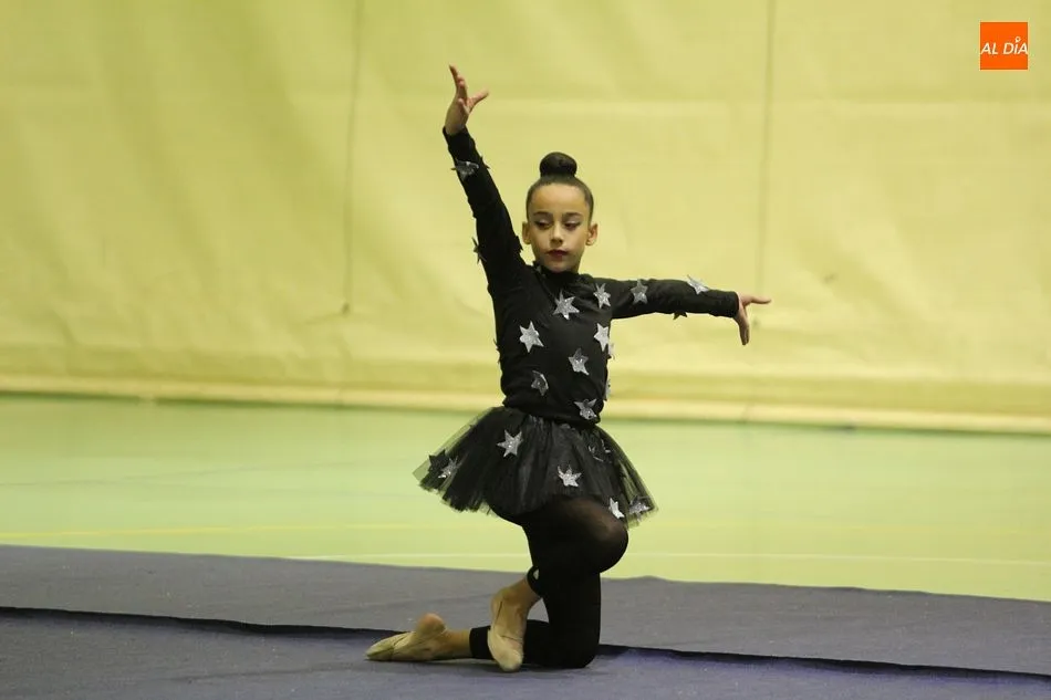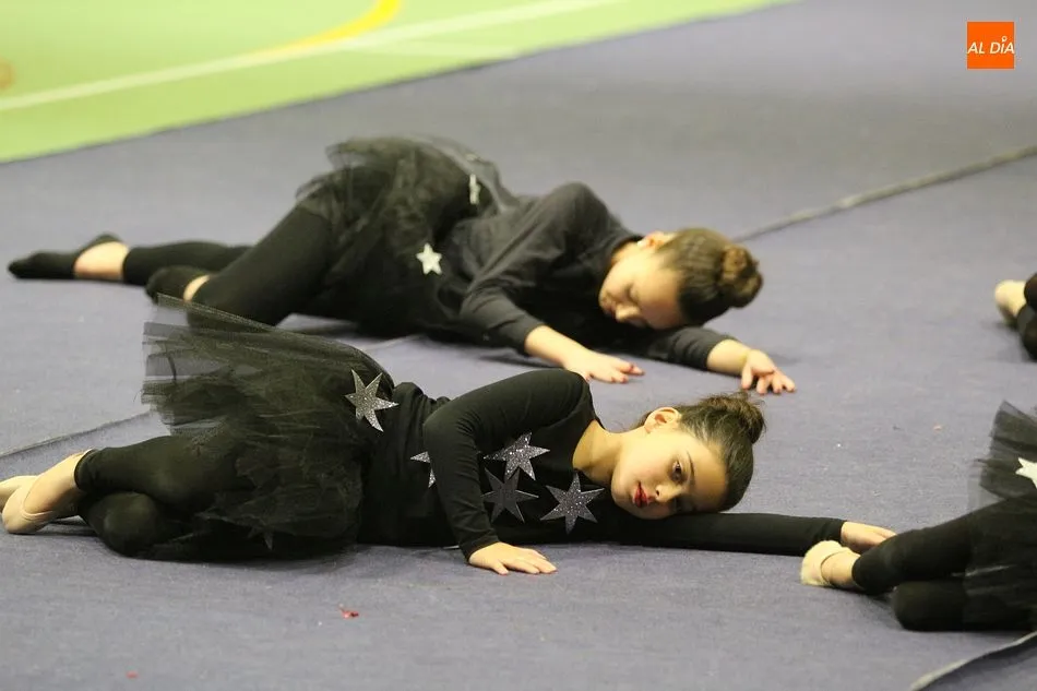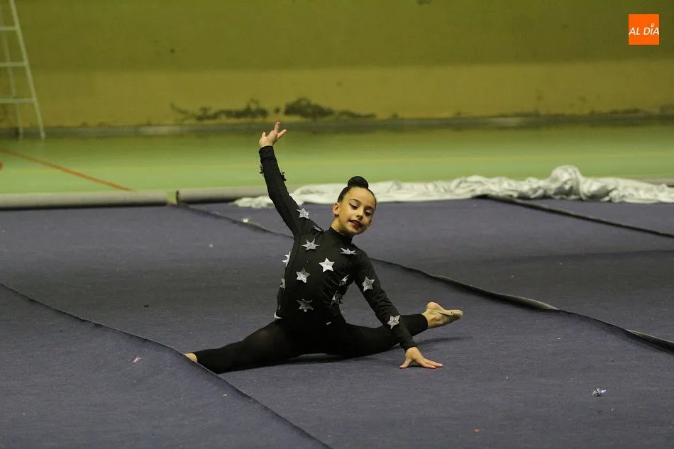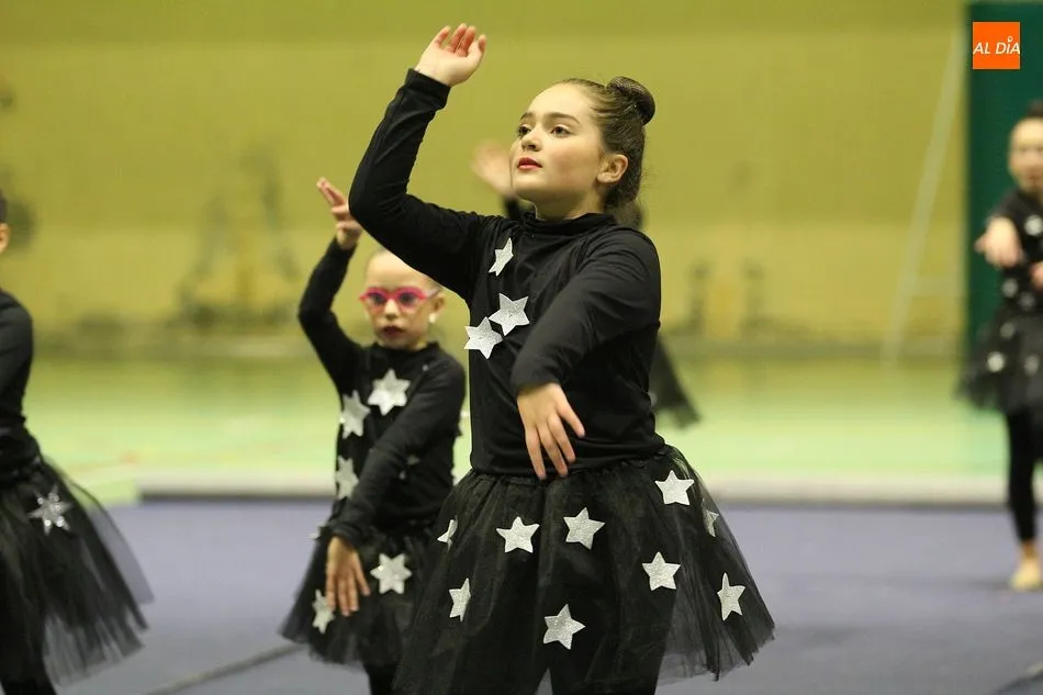 La escuela de gimnasia rítmica de Guijuelo ha ofrecido esta tarde una exhibición de Navidad en el pabellón municipal de deportes. En torno a 150 personas se han dado cita entre el público para ver a las jóvenes gimnastas realizar varios ejercicios, comenzando con unos calentamientos y más tarde un ejercicio conjunto para el grupo de pequeñas, que debutaba ante el público y a continuación las mayores.