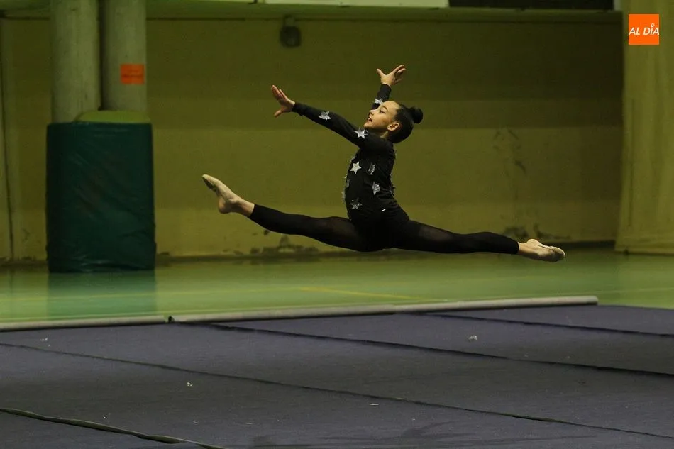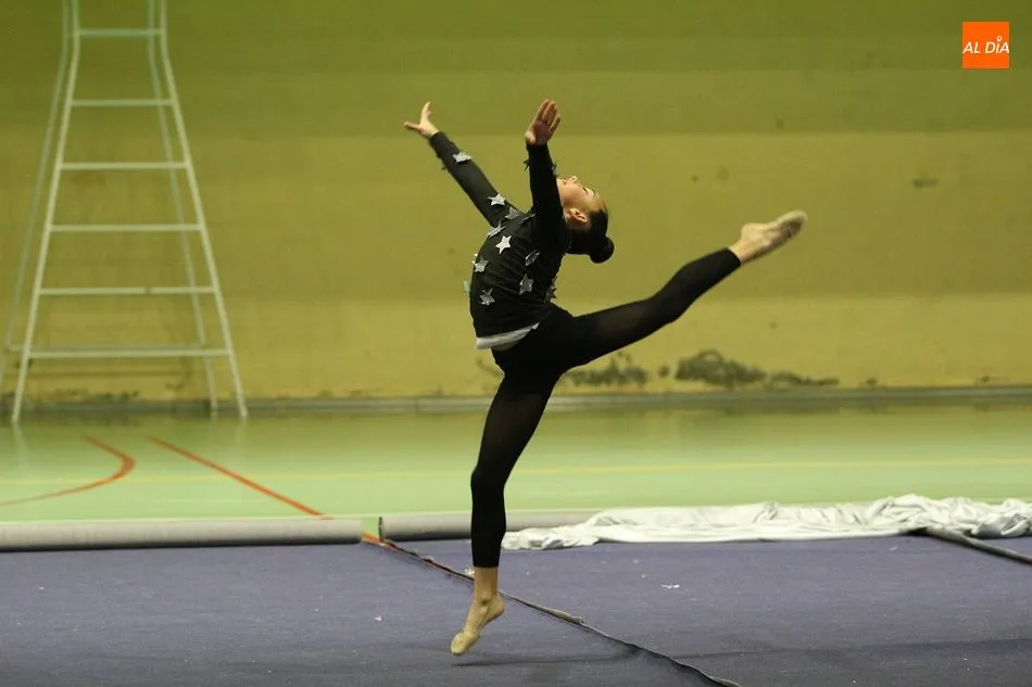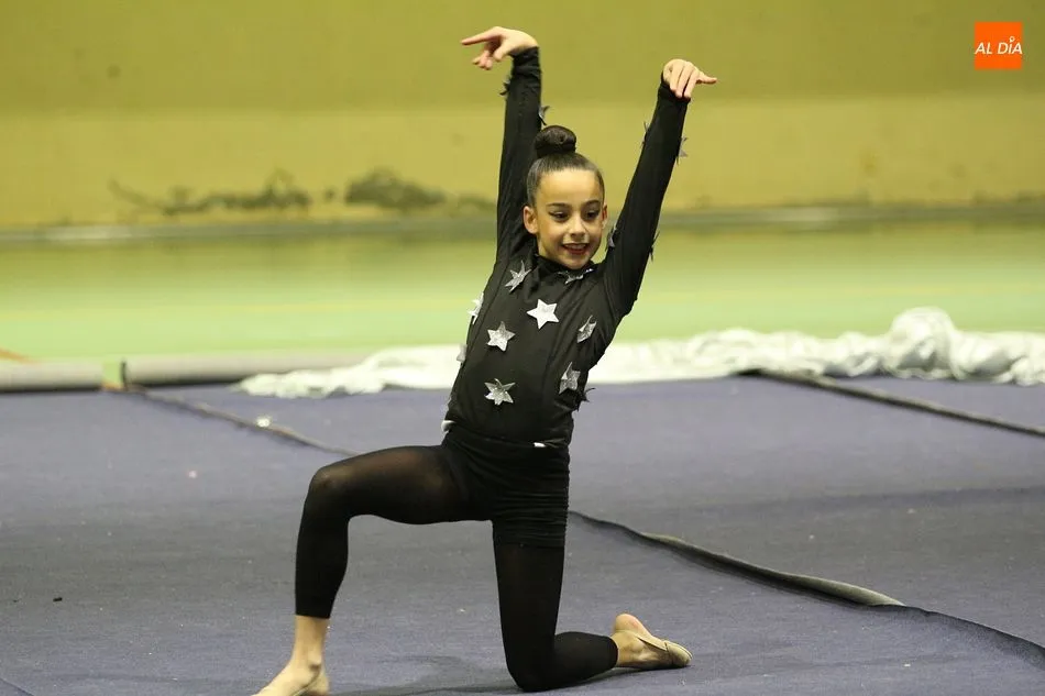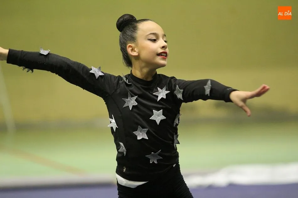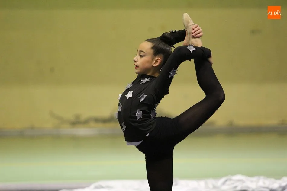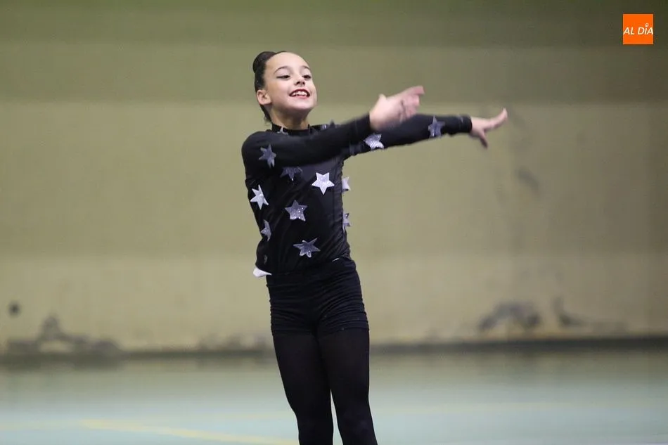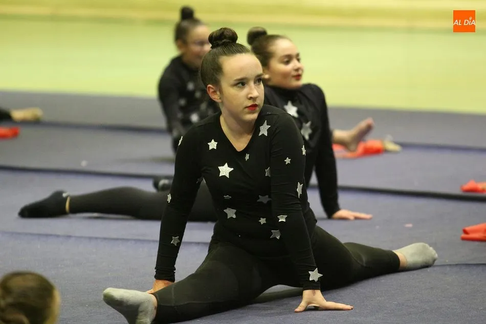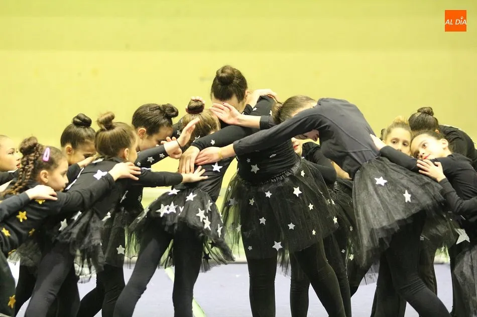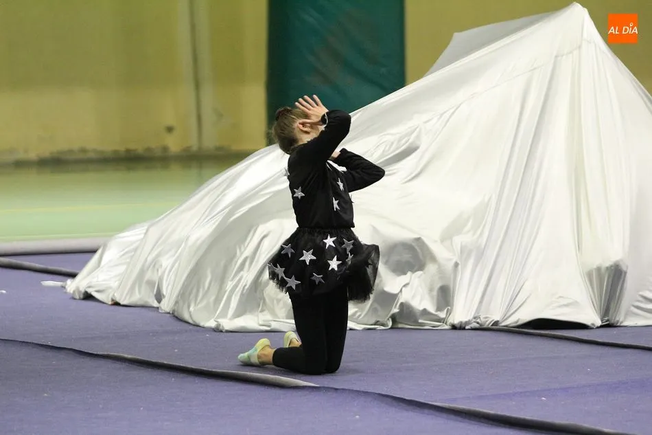 La escuela de gimnasia rítmica de Guijuelo ha ofrecido esta tarde una exhibición de Navidad en el pabellón municipal de deportes. En torno a 150 personas se han dado cita entre el público para ver a las jóvenes gimnastas realizar varios ejercicios, comenzando con unos calentamientos y más tarde un ejercicio conjunto para el grupo de pequeñas, que debutaba ante el público y a continuación las mayores.