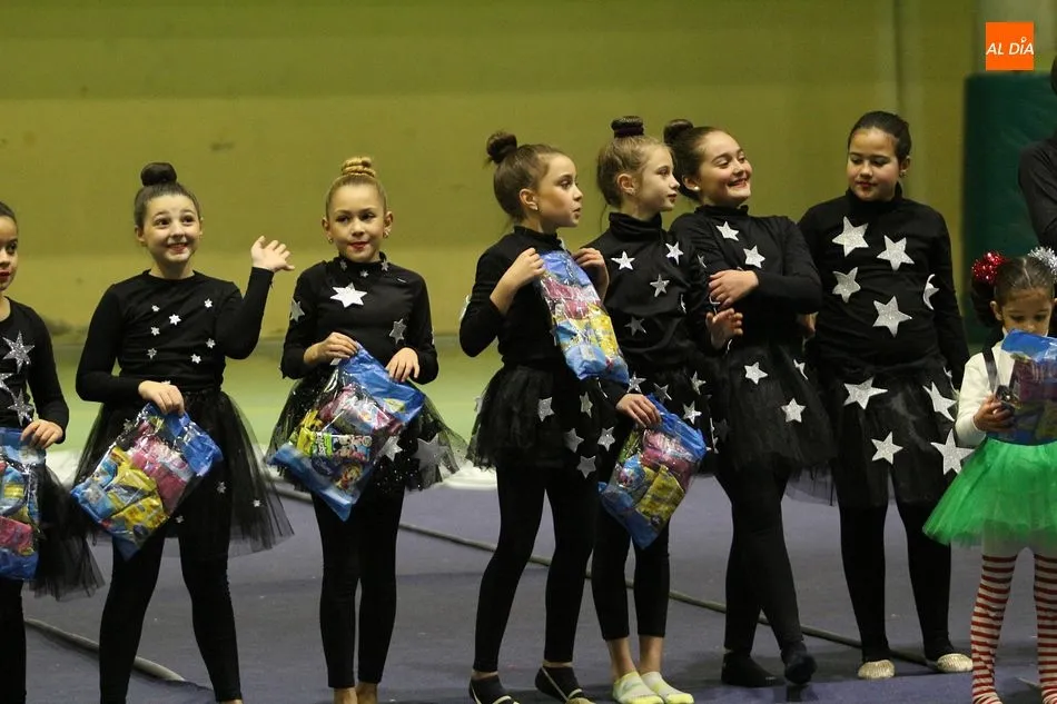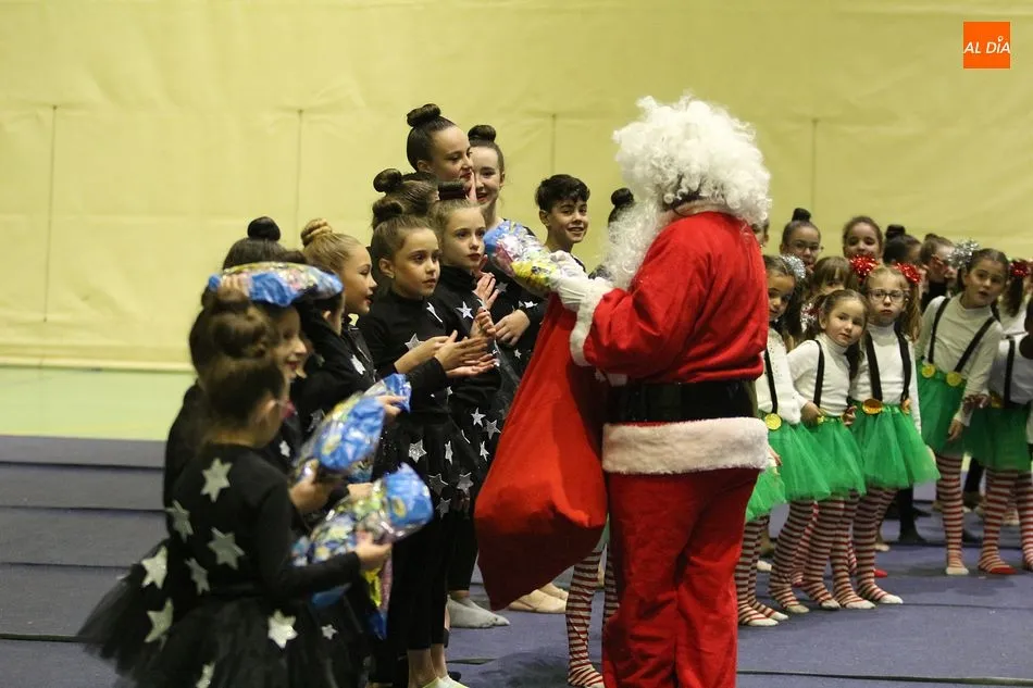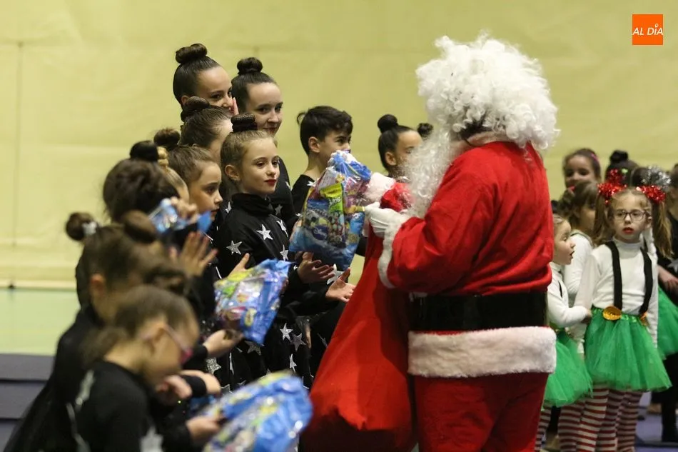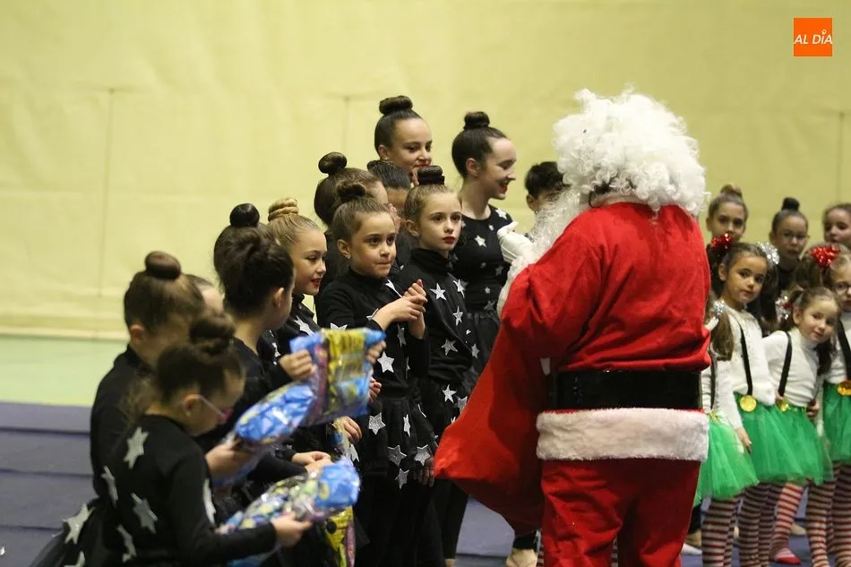 La escuela recibió la visita de Papa Noel, haciendo una entrega de bolsas de golosinas al final de la exhibición. No será lo único que reciban, puesto que según el coordinador de Deportes, Melchor Herráez, a principio de año se estrenará un tapiz de ejercicios con las medidas de competición oficiales, en lugar de la superficie que se usa actualmente sobre la pista del pabellón. La escuela crece cada año, con la incorporación de una decena de alumnas este curso, lo que eleva a casi 40 el número de gimnastas de la villa.