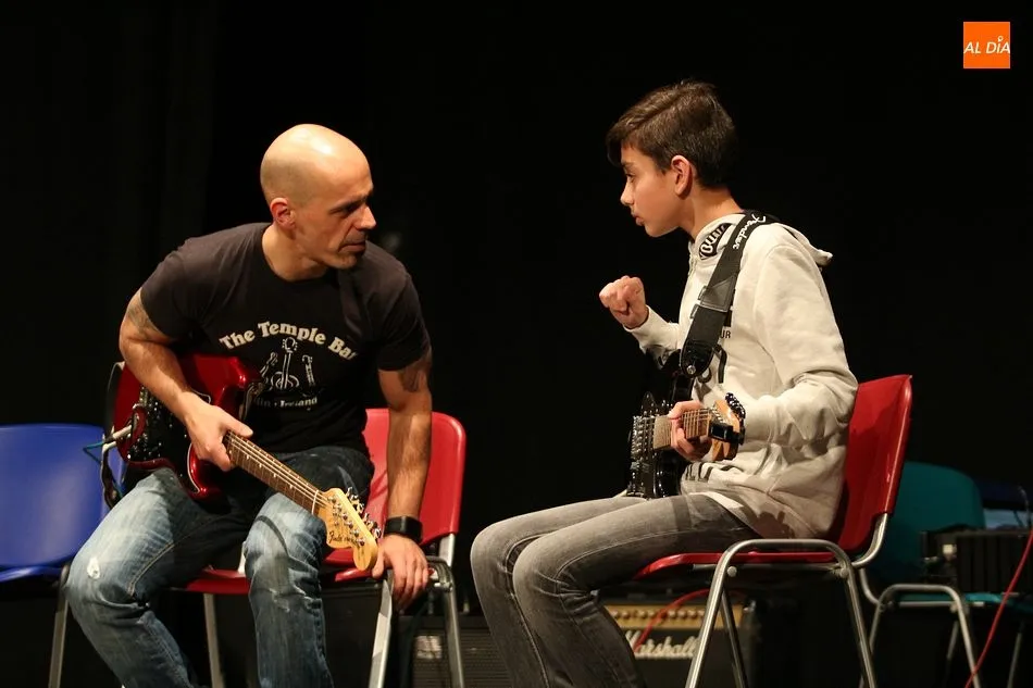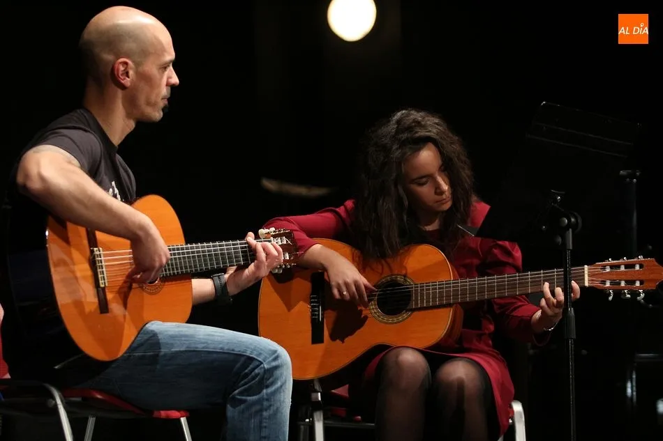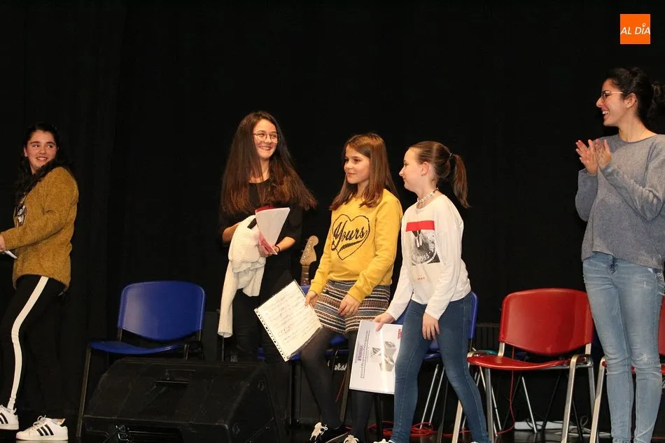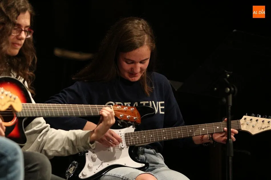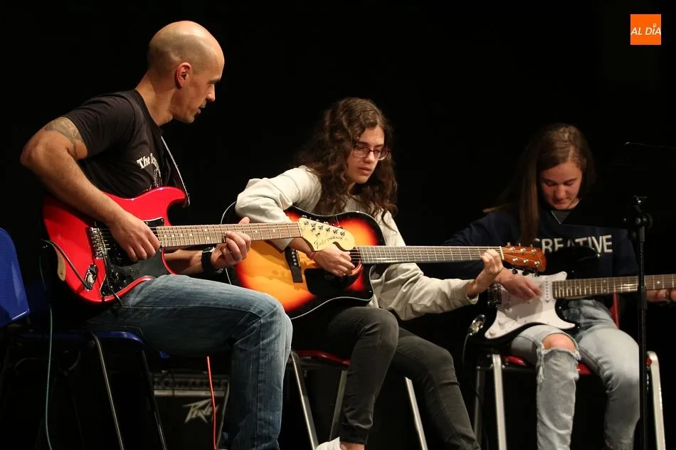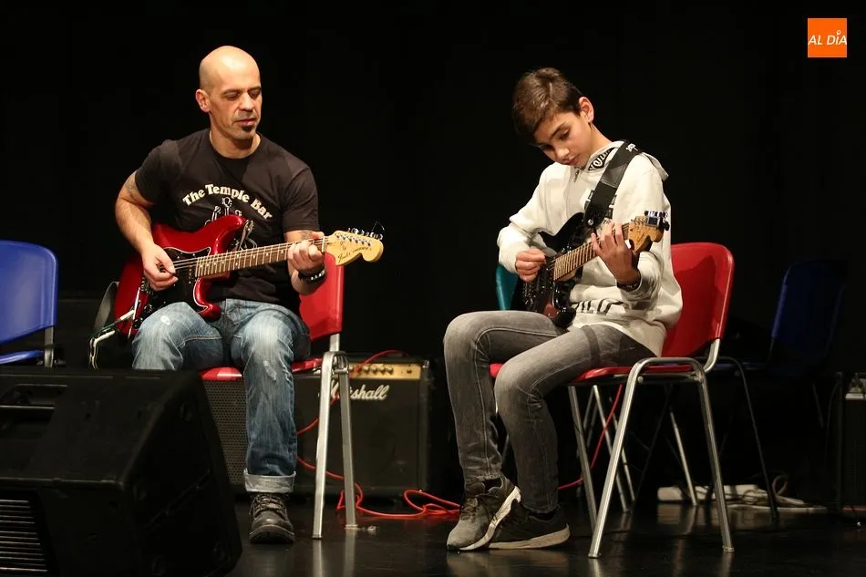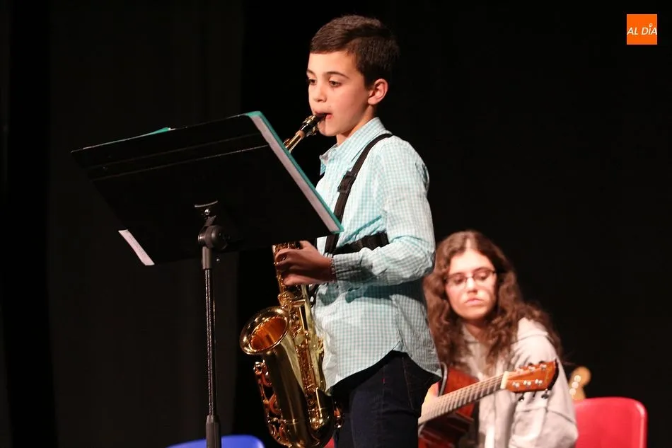 A continuación han actuado los alumnos de saxofón Alberto Benito y Esther Benito, que han interpretado cuatro villancicos junto a su profesora y directora de la escuela, Rosa Cojo. Finalmente, los alumnos de guitarra eléctrica de Javier Sánchez, Virginia Hernández, Celia Martín, Sara Campos, David Hernández y Julio Pascual, han cerrado el ciclo de actuaciones navideñas con diversos temas clásicos del rock, pop y villancicos.