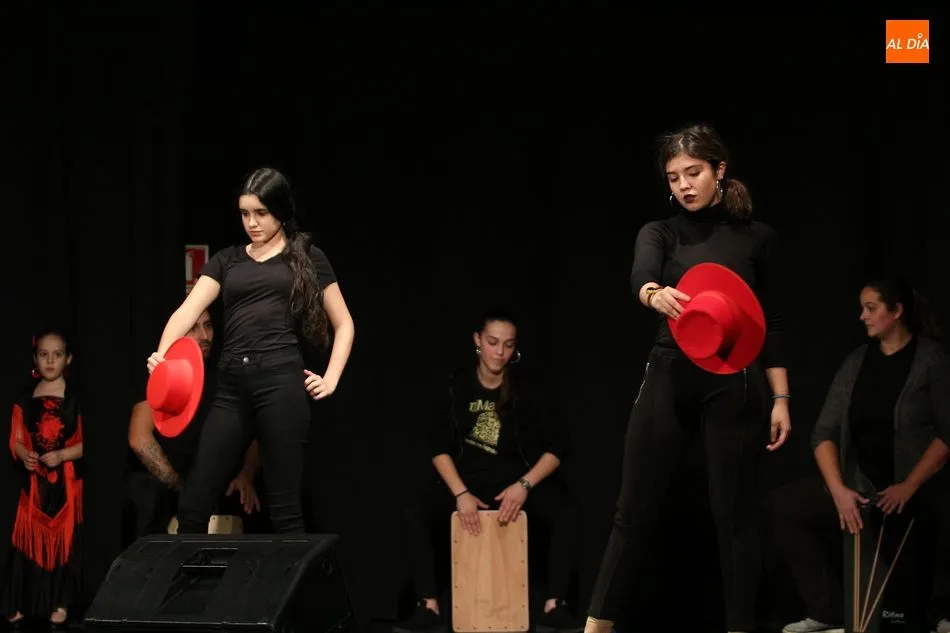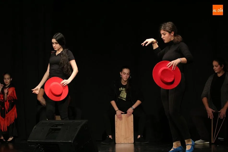 En esta ocasión, las bailaoras de sevillanas de la escuela comenzaron la muestra, seguidas de las alumnas más mayores y la novedad de este año, con la actuación de los alumnos de cajón flamenco. Con el patio de butacas casi lleno, no faltaron los villancicos con ritmos flamencos.