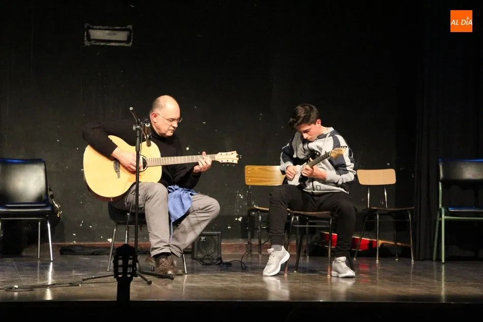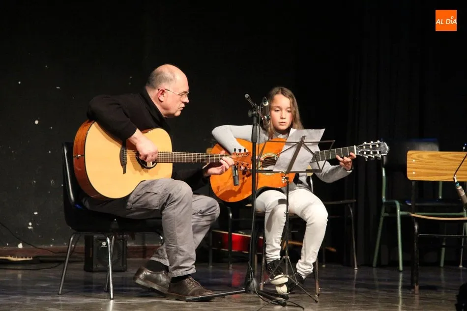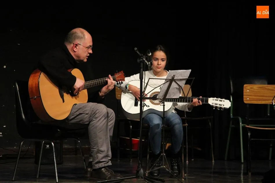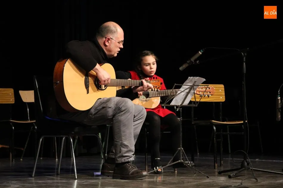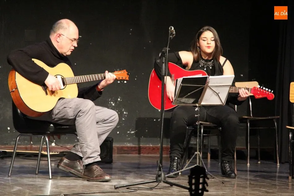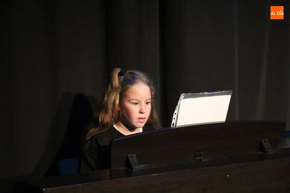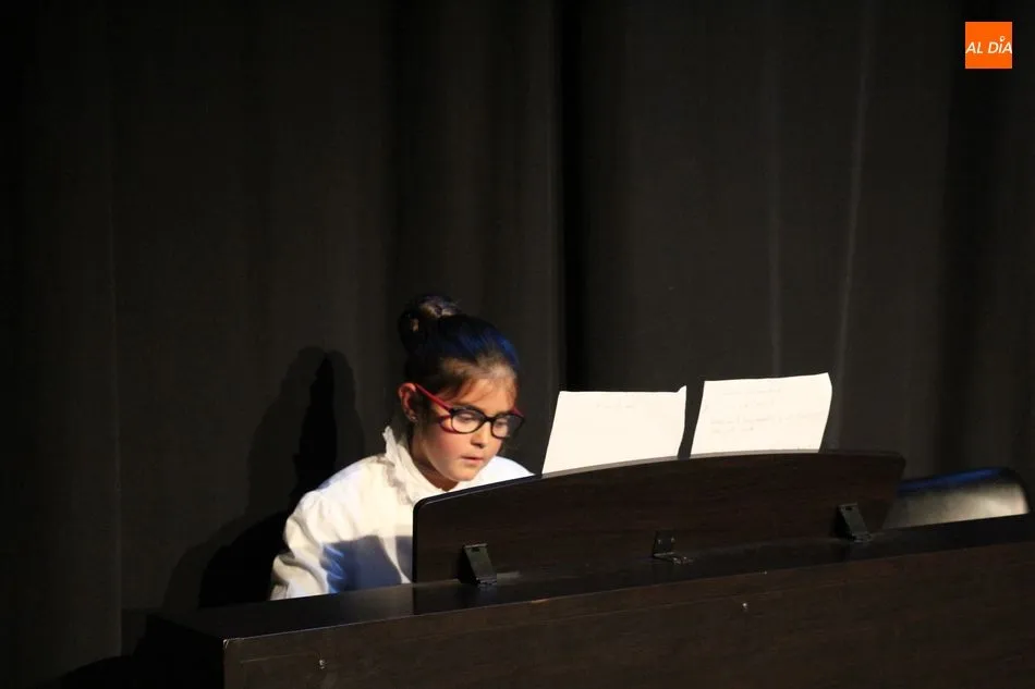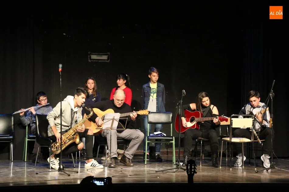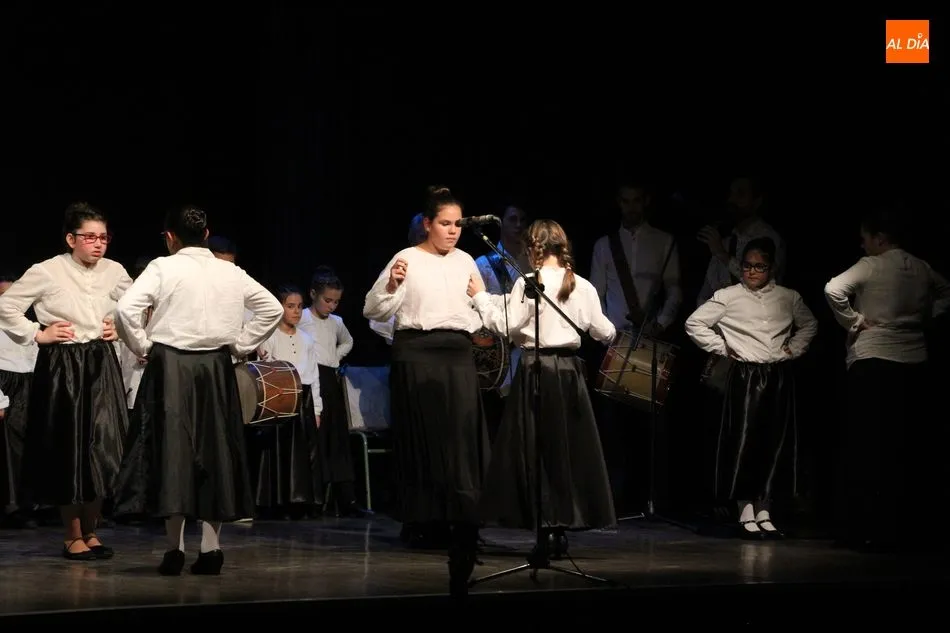 Con charradas y villancicos, el colofón a esta audición lo ponía, un año más, los alumnos de gaita y tamboril, y bailes charros. Y si el pasado año hacían una reflexión sobre la violencia de género con una canción, este año y después de los últimos acontecimientos, como el asesinato de Laura Luelmo, creyeron que era ?inviable? vestir los trajes típicos de fiesta en ceremonias como bodas, y optaron por salir al escenario ataviados con faldas negras y camisa blanca, como explicó el profesor Bernardo Pérez, a lo que el público respondió con un caluroso aplauso.