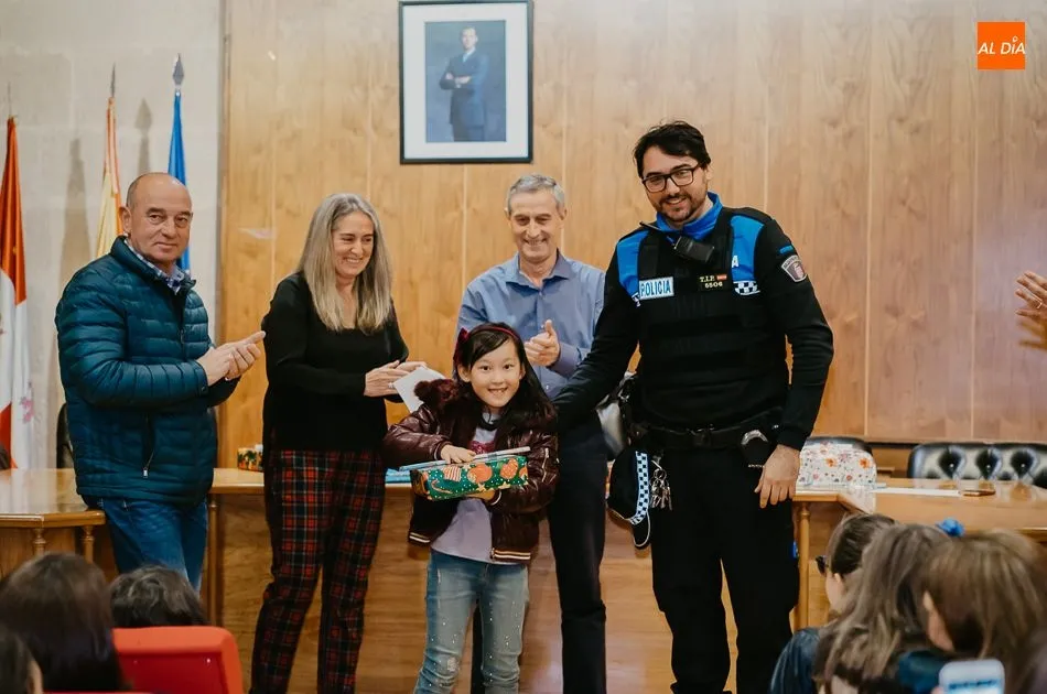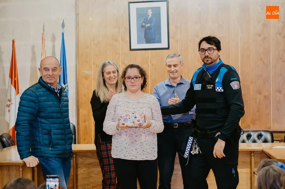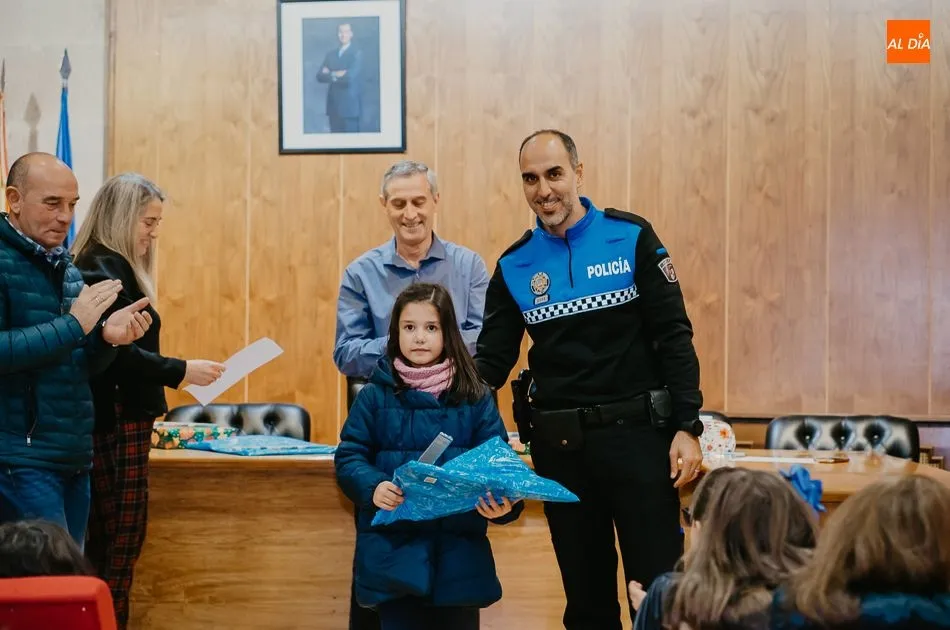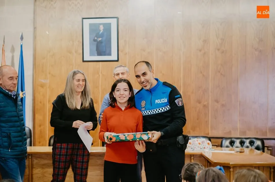 El alcalde del Ayuntamiento de Alba de Tormes, Jesús Blázquez Gómez y la policía local de Alba de Tormes han entregado los premios del II Concurso de dibujo y pintura infantil de la Asociación de la Policía Local Alba de Tormes-Terradillos, de los centros educativos de la villa ducal.