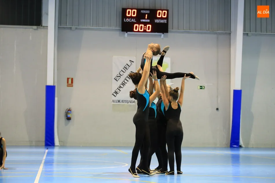 La Escuela Deportiva Aldeatejada celebró esta tarde su tradicional fiesta de Navidad con numerosas actividades y juegos en los que estuvieron presentes los distintos conjuntos de fútbol sala, baloncesto y gimnasia rítmica que conforman la escuela deportiva.
