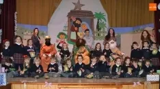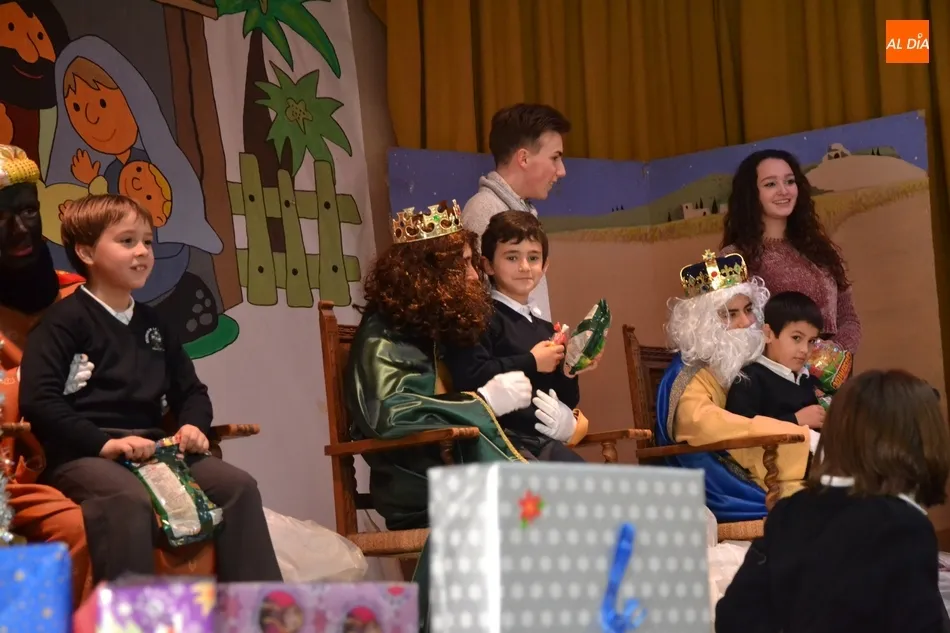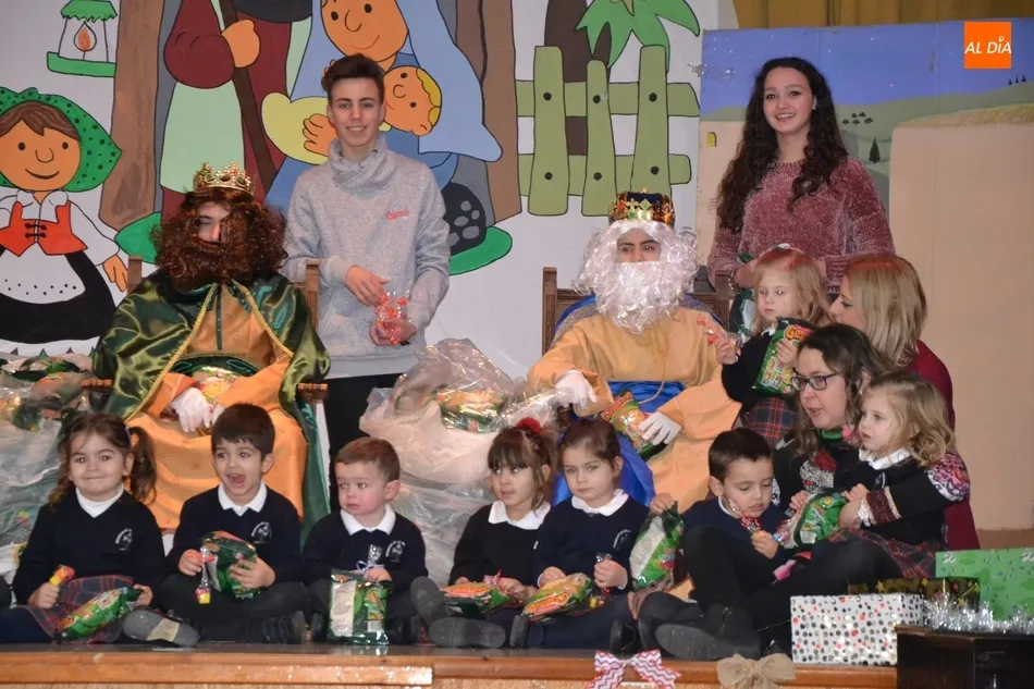 Finalizada esta primera tanda, se vació el salón de actos para dar paso a los alumnos de Primaria, con los cuales se repitió la fórmula de ir subiendo al escenario grupo por grupo, y como remate, los profesores. Al mismo tiempo que tenían lugar los encuentros sobre el escenario, alumnos de otros grupos iban relatando qué le habían pedido a Sus Majestades. Una vez se hicieron la última foto de familia, los Reyes Magos abandonaron el recinto.