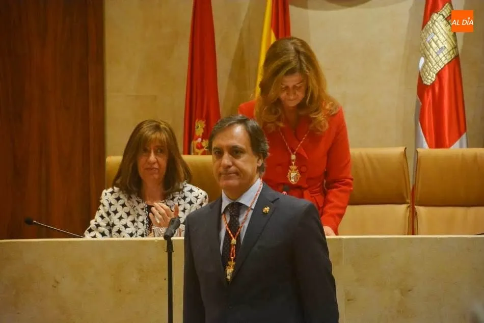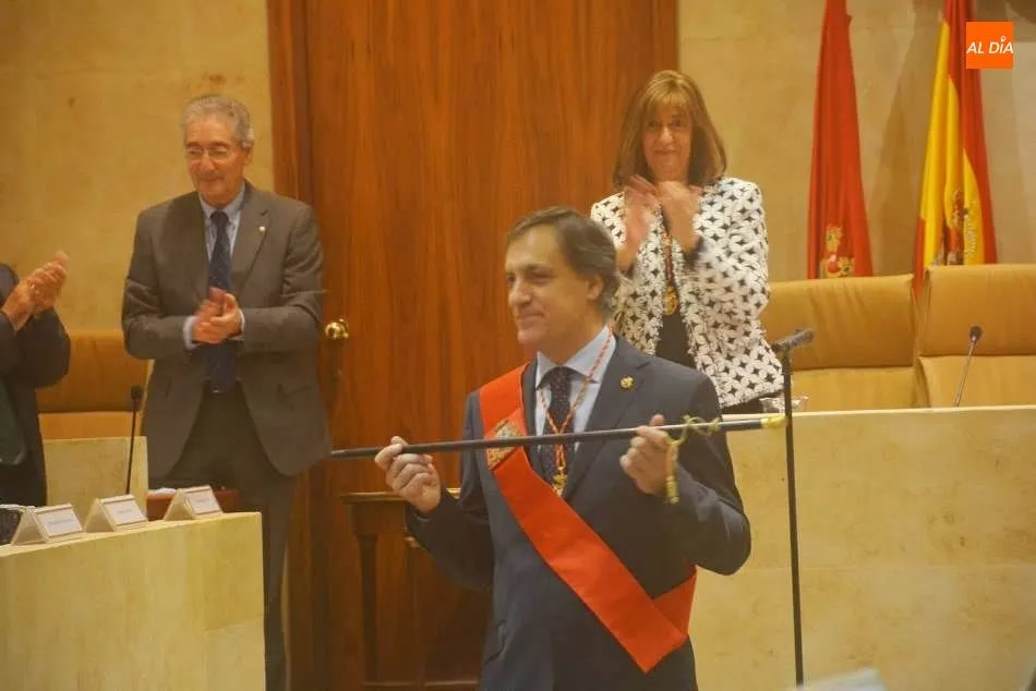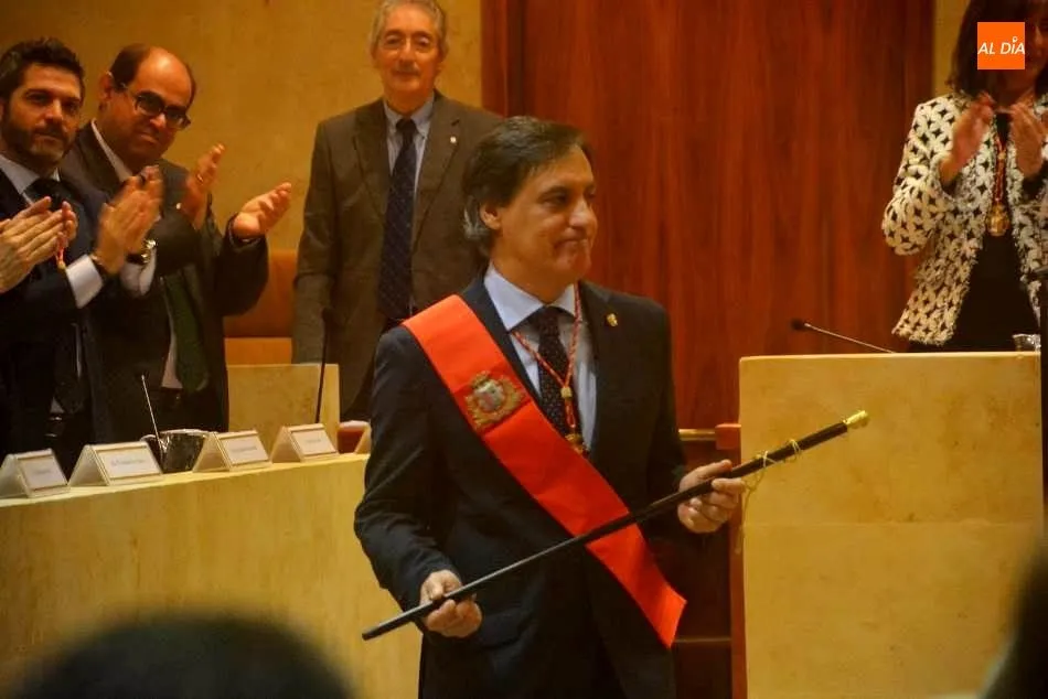 Con un recuerdo para el medio rural, ?porque muchas personas que vivimos en Salamanca o nuestras familias procedemos de pequeños pueblos, que tienen derecho a ser escuchados, a mantener su identidad y a tener un nivel de servicios públicos cada vez más cercano al que disfrutamos en las ciudades?, finalmente, se emocionaba al mencionar el apoyo de su mujer, Mamen, y de su familia. Y, por supuesto, agradecía la confianza depositada en él por su predecesor, Alfonso Fernández Mañueco.