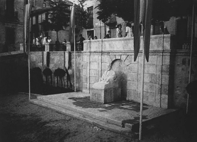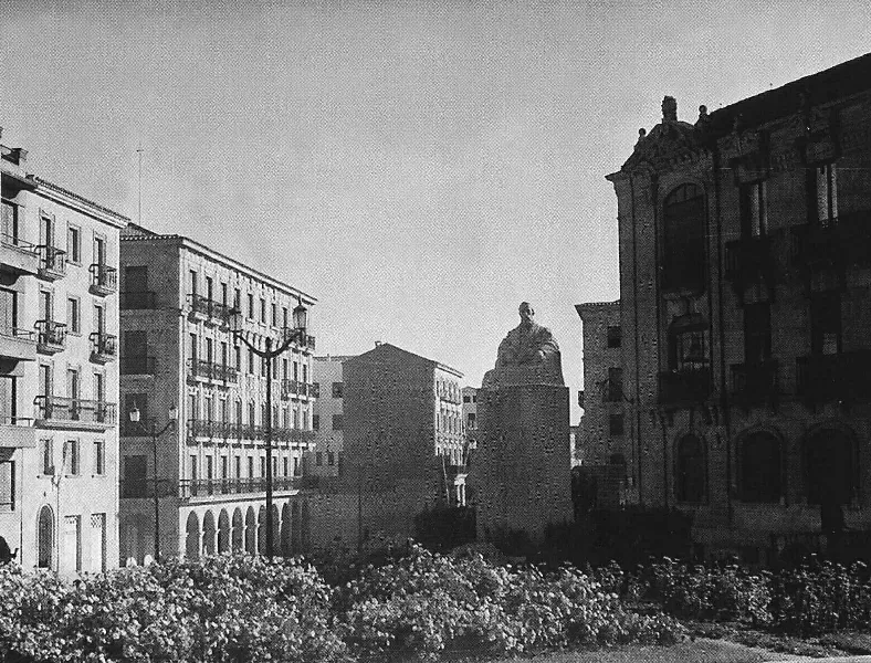 • Dos lugares donde estuvo situada la escultura de Tomás Bretón, plaza que lleva su nombre y en la parte superior de la Gran Vía entre 1963 y 1981.