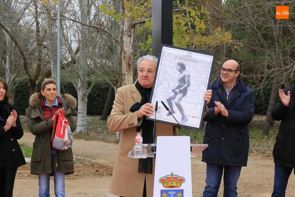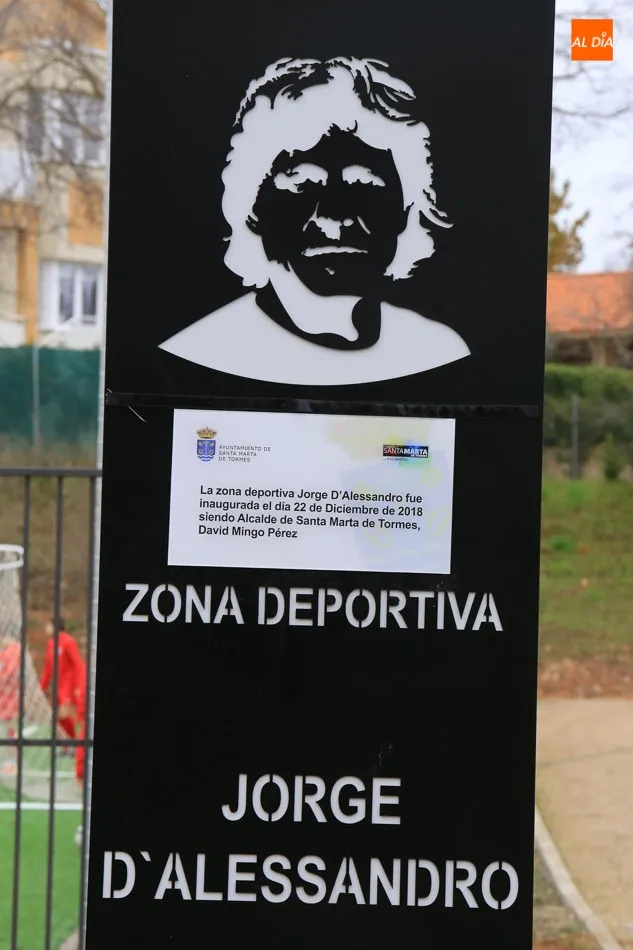 El Ayuntamiento de Santa Marta de Tormes ha reunido a más de 300 personas entre las que se encontraban representantes de instituciones, de asociaciones, clubes vecinos y personas ligadas al mundo del fútbol del deporte para dar nombre a la zona deportiva de Valdelagua, Átika y Aldebarán como `zona deportiva Jorge D´Alessandro´.
