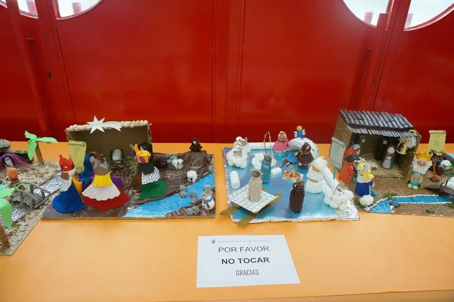 Al son de panderetas, almirez y zambomba, la jornada también sirvió para inaugurar la exposición de los belenes elaborados por los alumnos y alumnas de de 4º y 5º de primaria del Colegio CEIP Villares de la Reina, que se exponen en el pabellón. Con motivo de las fiestas navideñas, desde el área de religión del Colegio y la iniciativa tan original de la profesora Mª José, han elaborado unos belenes, con el trabajo voluntario de los alumnos/as de primaria, con el objetivo de dar el verdadero valor y sentido de la Navidad, usando una gran diversidad de materiales reciclables. Creaciones llenas de detalles que se pueden ver hasta al 5 de enero, en el Centro de Ocio y Deporte José Martín Méndez.
