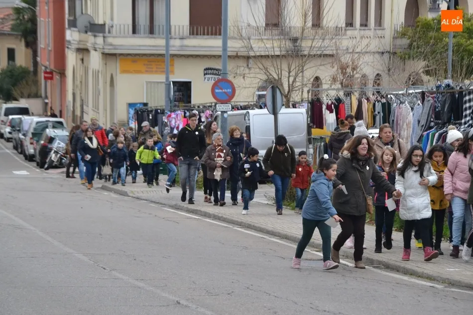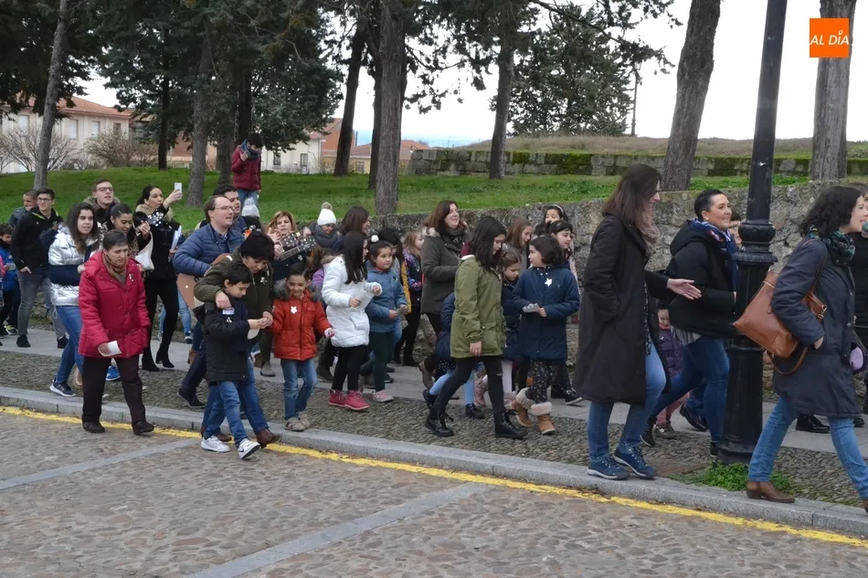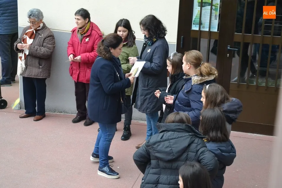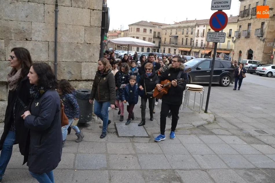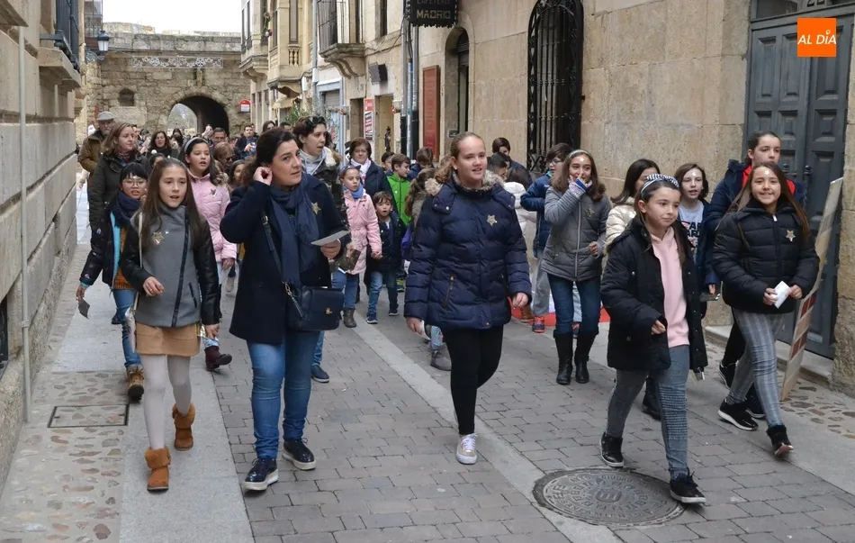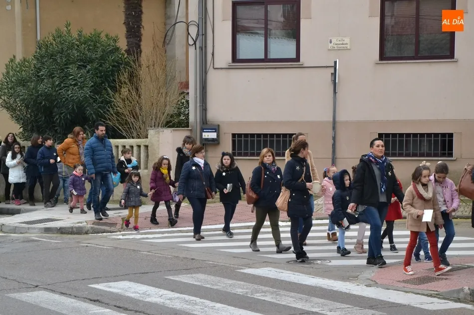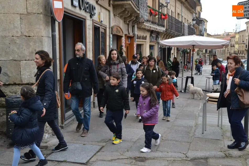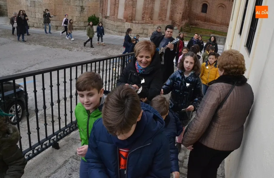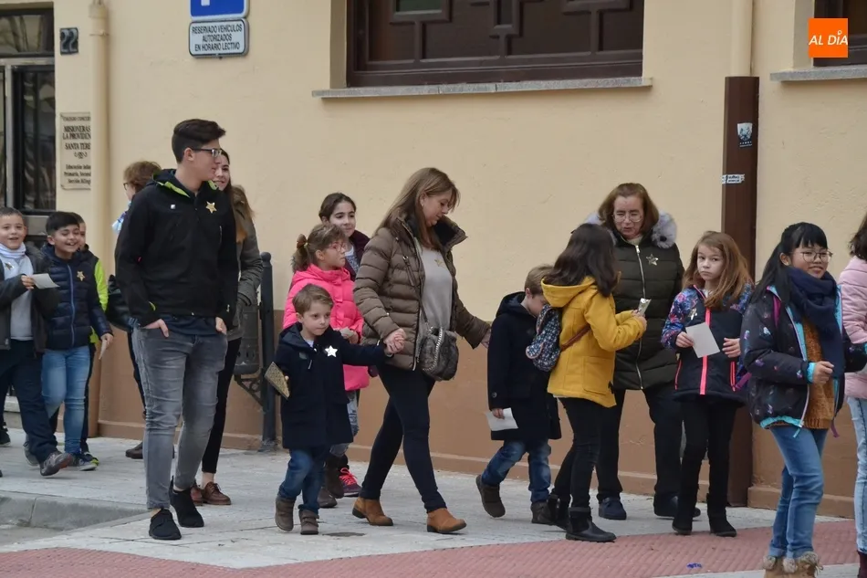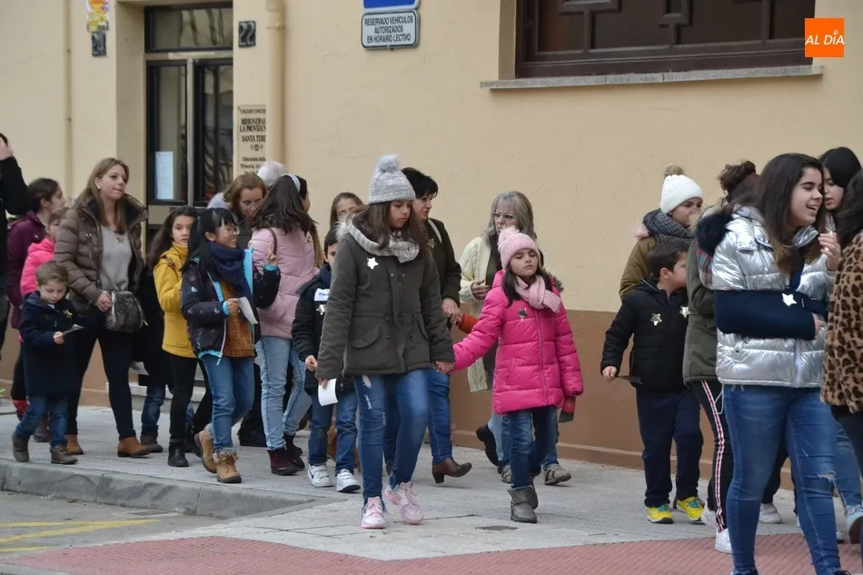 La comitiva tomó la Avenida Conde de Foxá (pasando al lado del mercadillo sabatino), siguió por el Registro, la calle Madrid y la calle San Juan, para alcanzar la Plazuela Cristóbal de Castillejo. Por todo ese trayecto, los chavales repartieron centenares de estrellas -con la leyenda Jesús nace en ti- a todos los adultos con los que se fueron encontrando, a la par que les felicitaban la Navidad.