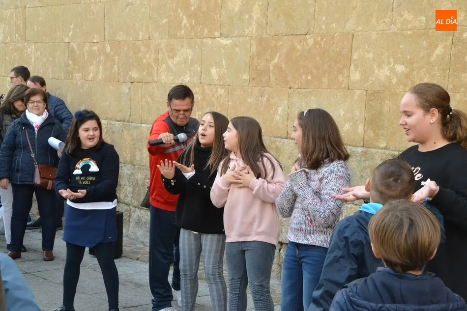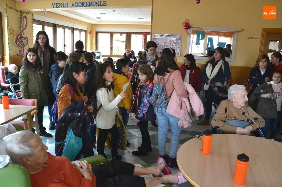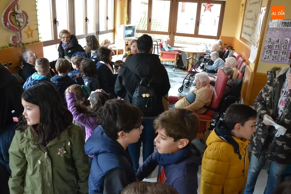 Los chavales también se acercaron a las residencias de mayores del centro histórico