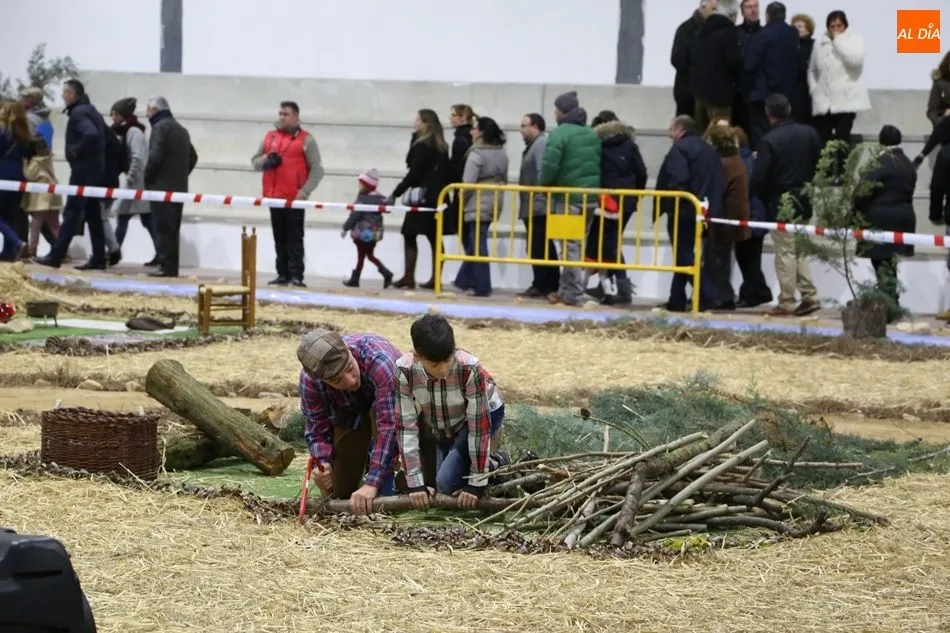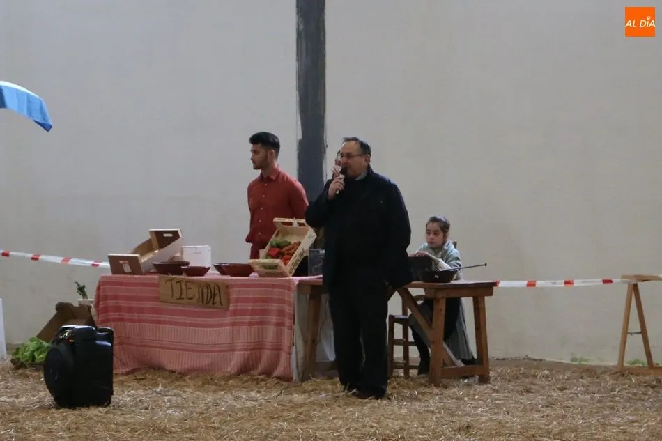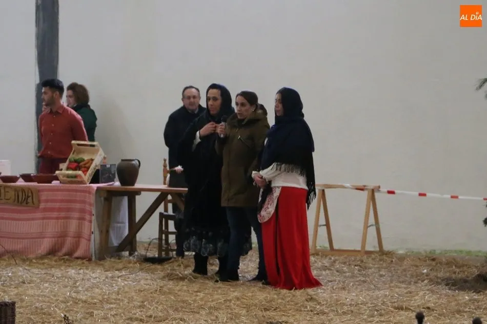 El párroco de Babilafuente, Pedro Miguel Díez, y las organizadoras han sido los encargados de inaugurar el belén, instalado en el pabellón municipal.
