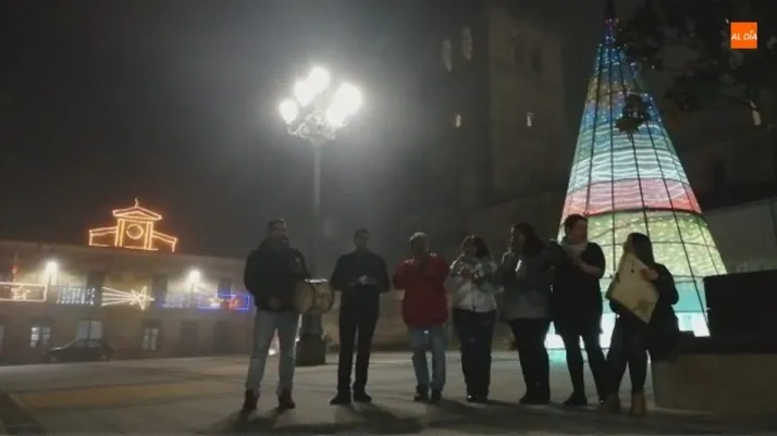 Jésica Joaquín, Lidia Prieto Herrero, Verónica Prieto Herrero, Soco Nieto González, Leo, Jorge Sousa Egido y David Vicente Prieto, integrantes del grupo de folclore Organza, eligieron la Plaza de España de Vitigudino para grabar un vídeo con el felicitar las navidades a todos sus seguidores.