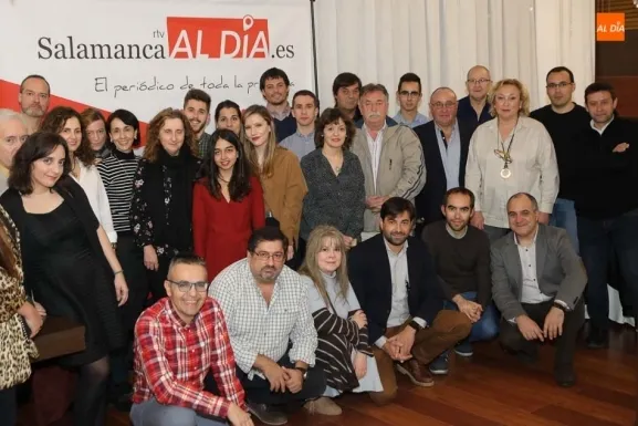 Periodistas, fotógrafos, delegados en las comarcas, corresponsales, administrativos, comerciales, diseñadores, técnicos informáticos, personal de los departamentos de producción, directivos y accionistas de los periódicos SALAMANCArtv AL DÍA (diario digital) y SALAMANCA AL DÍA (periódico mensual en papel) asistían ayer sábado a la tradicional cena de Navidad para celebrar el fuerte crecimiento registrado en número de lectores ?más de un 20% en el último año? , anunciantes y empresas que han confiado en este Grupo, y brindar por el que ?todo apunta? será un nuevo año cargado de éxitos, con nuevos proyectos de comunicación y con el objetivo de dar un nuevo salto cualitativo en la producción informativa.
