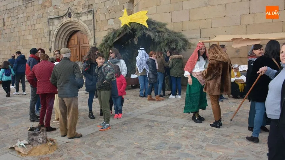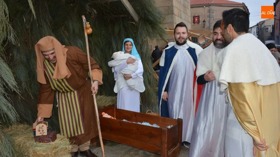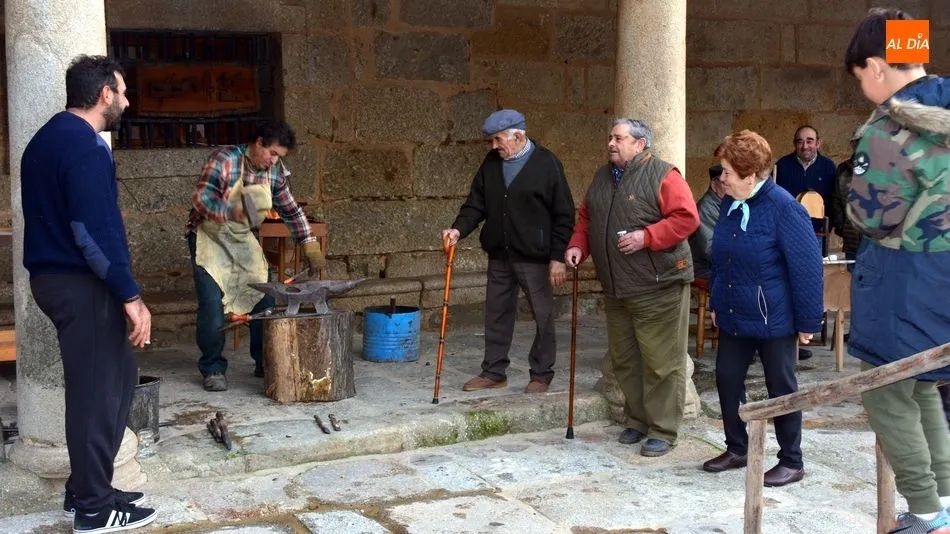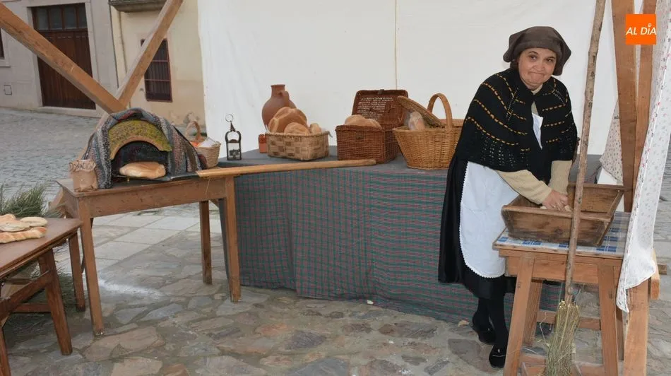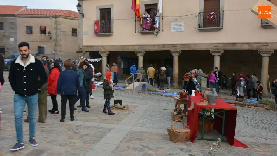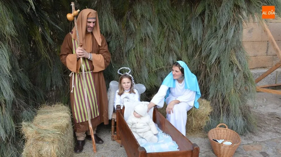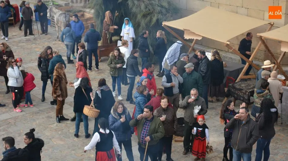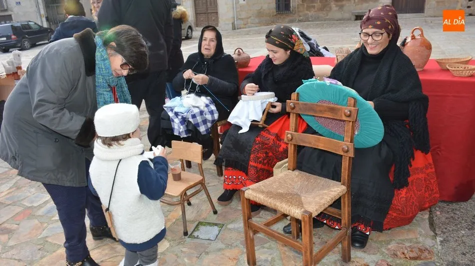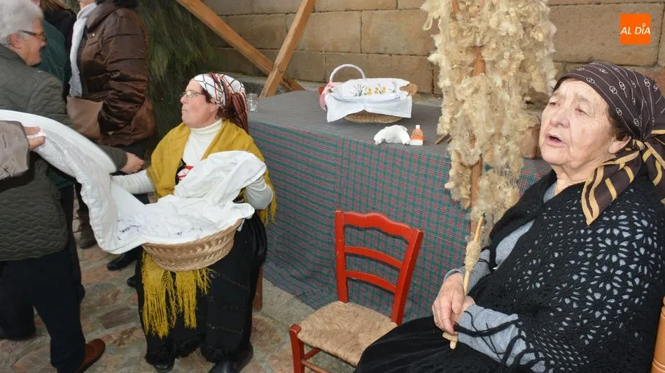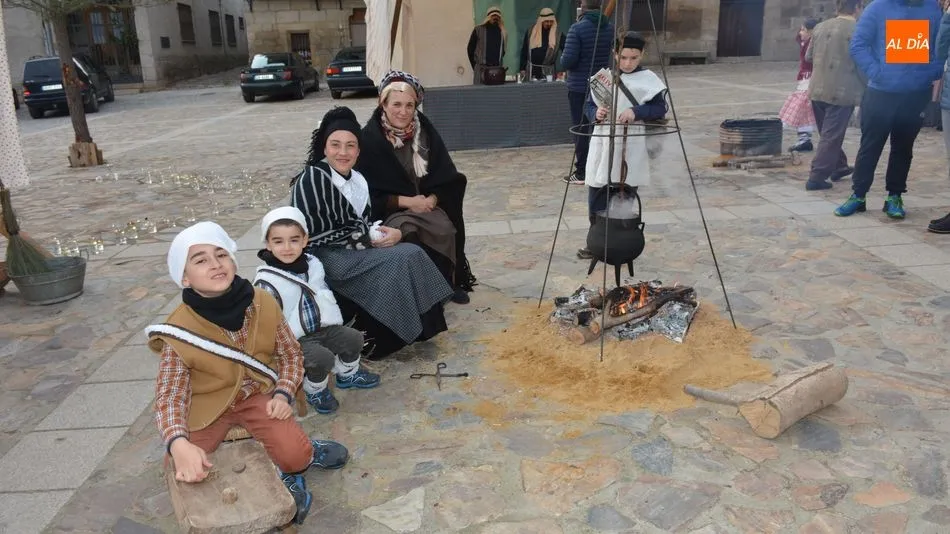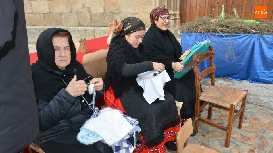 En torno al Portal, habilitado con ramas de escobas, y al calor de las brasas de varias lumbres sobre las que colgaban ollas antiguas, se colocaron, haciendo su trabajo en directo, las panaderas, la quesera, las hilanderas, las tejedoras, las castañeras ofreciendo su producto recién asado, también vino caliente, ? y bajo los soportales de la casa consistorial varios artesanos trabajando en directo, como el herrero, la artesana del barro y el zapatero (papel representado por el alcalde Francisco de la Cruz). Además, las lavanderas, arrodilladas en tajuelas, lavaban las ropas en un regato habilitado ante la casa consistorial