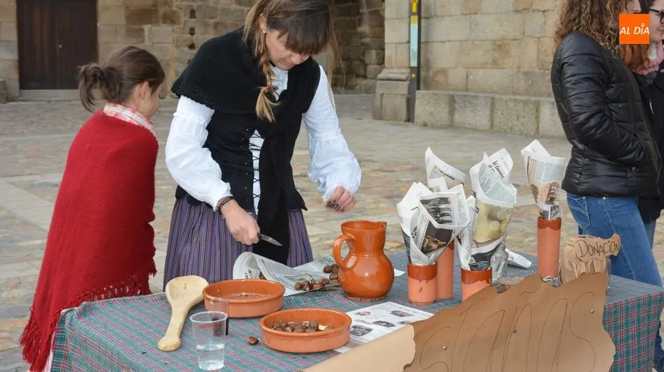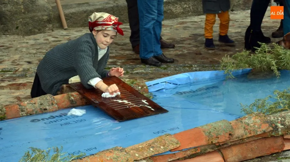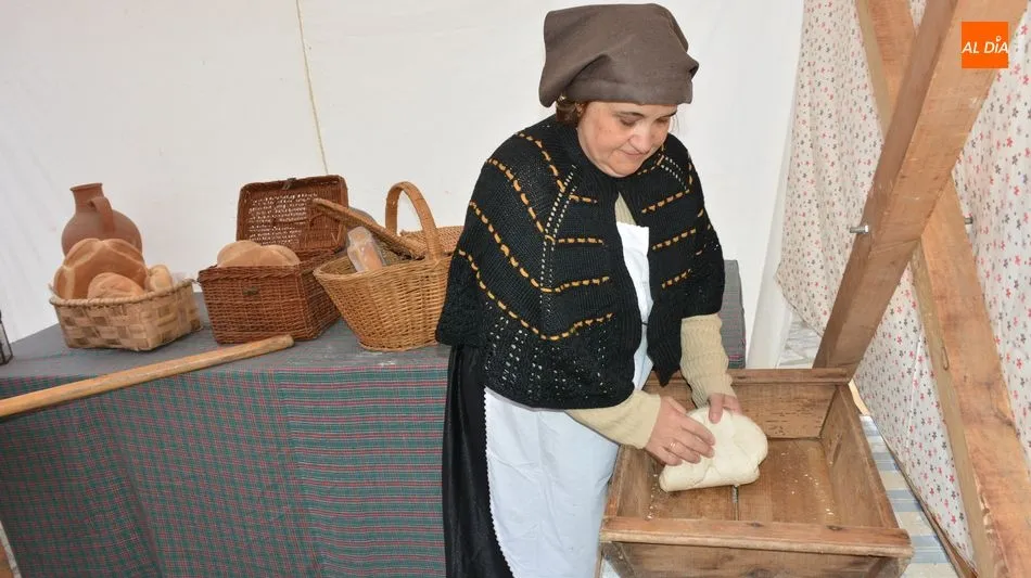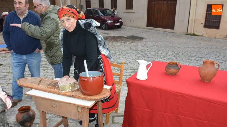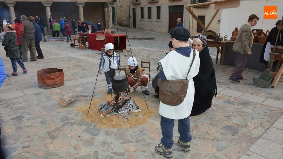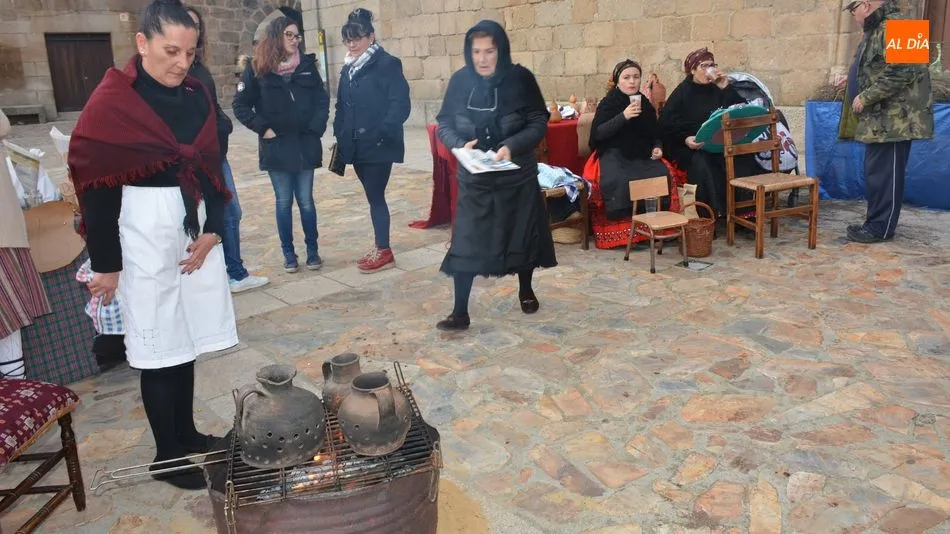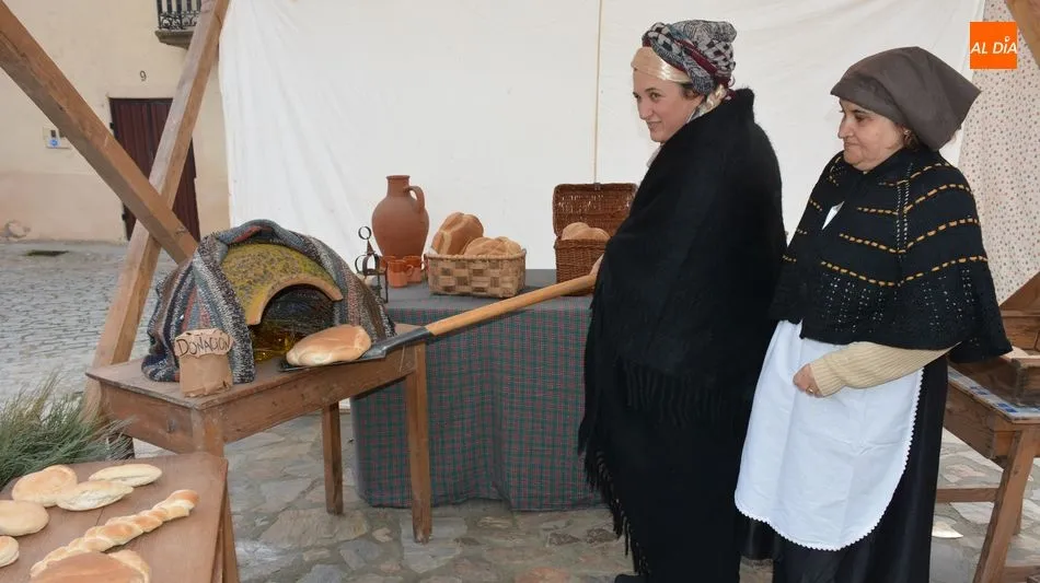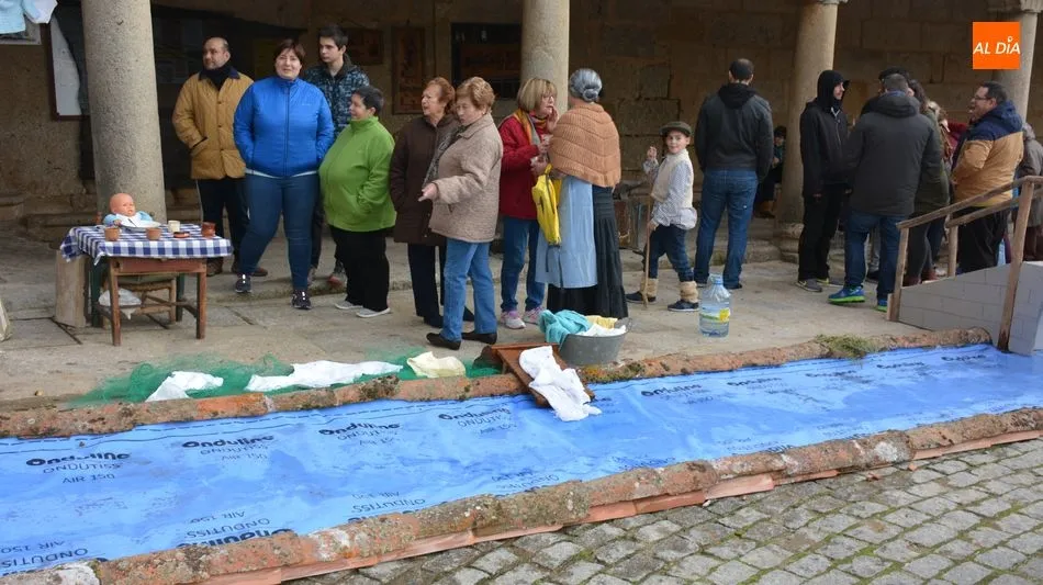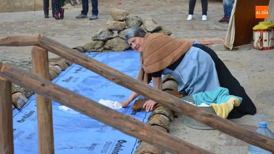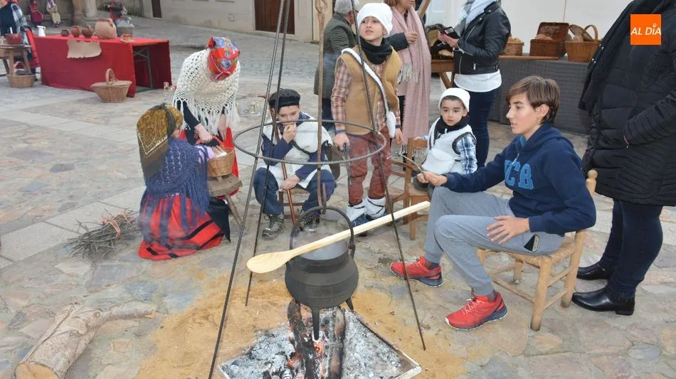 En torno al Portal, habilitado con ramas de escobas, y al calor de las brasas de varias lumbres sobre las que colgaban ollas antiguas, se colocaron, haciendo su trabajo en directo, las panaderas, la quesera, las hilanderas, las tejedoras, las castañeras ofreciendo su producto recién asado, también vino caliente, ? y bajo los soportales de la casa consistorial varios artesanos trabajando en directo, como el herrero, la artesana del barro y el zapatero (papel representado por el alcalde Francisco de la Cruz). Además, las lavanderas, arrodilladas en tajuelas, lavaban las ropas en un regato habilitado ante la casa consistorial