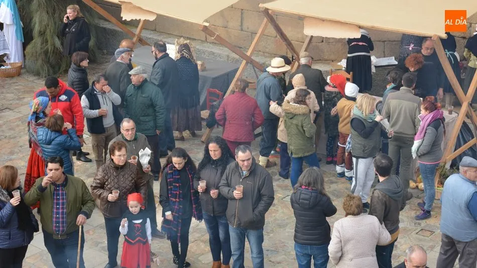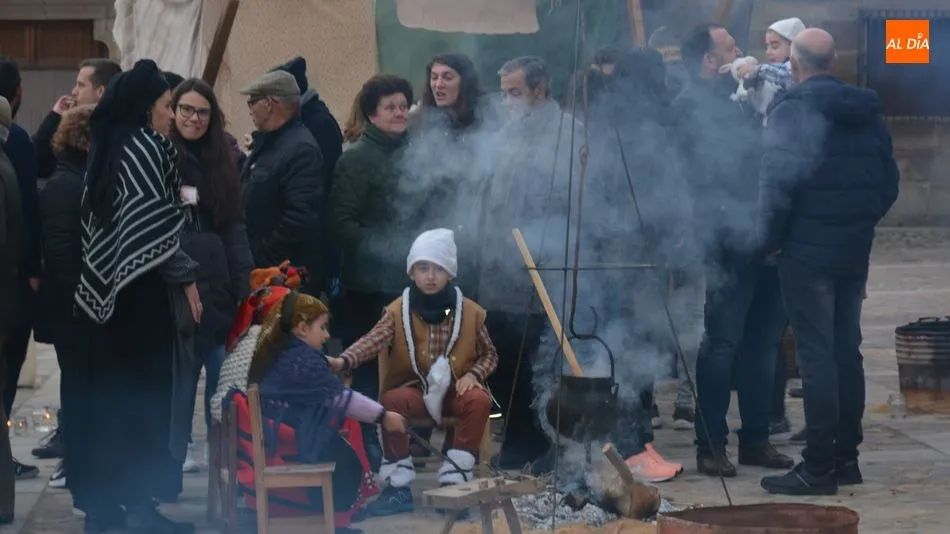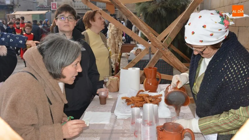 El chocolate y los churros recién hechos por un grupo de mujeres, además de la música navideña, recibieron a los visitantes del Belén Viviente, llegados de distintos pueblos del entorno.