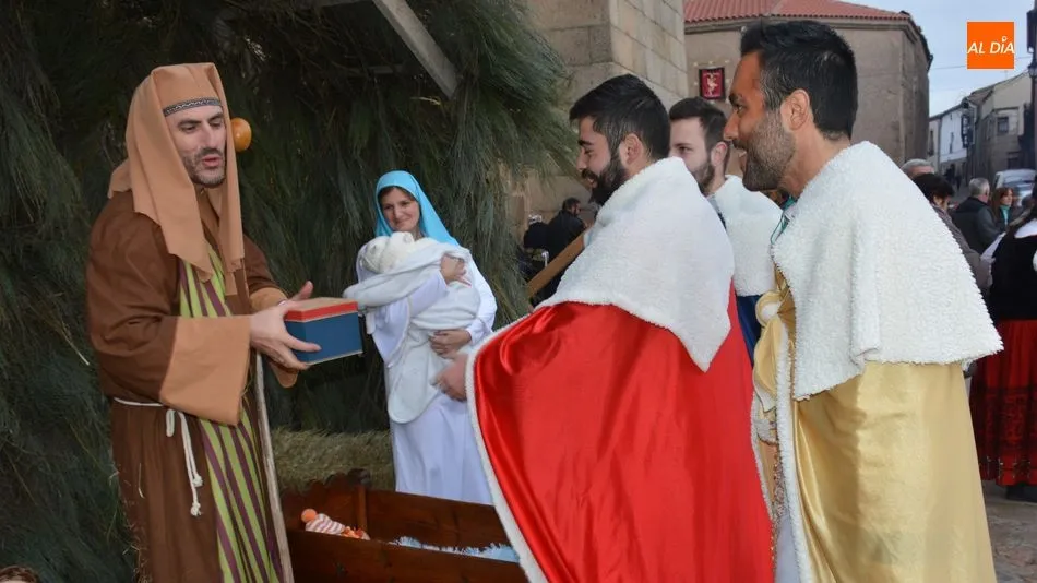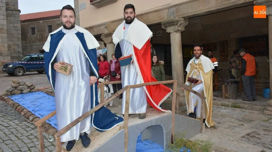Hasta el portal se acercaron los Reyes Magos que llegaron a la plaza cruzando el pequeño puente colocado sobre el arroyo, para adorar al niño recién nacido y ofrecerle sus presentes.