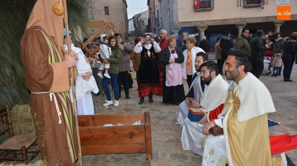 Todo el pueblo, desde el bebé que durmió en la cuna, vigilado por la Virgen y San José, los niños ataviados de pastores y pastoras, los jóvenes, las madres y padres, las abuelas y abuelos, el alcalde, el párroco,? Prácticamente todos los vecinos de San Felices se dieron cita la tarde del 24 de diciembre en la plaza de plaza de la villa, ataviados con las ropas adecuadas (pastores y pastoras, mayoritariamente) para participar en la recreación de un gran Belén Viviente, el primero que se ha celebrado en la villa a iniciativa de la asociación La Alhóndiga.