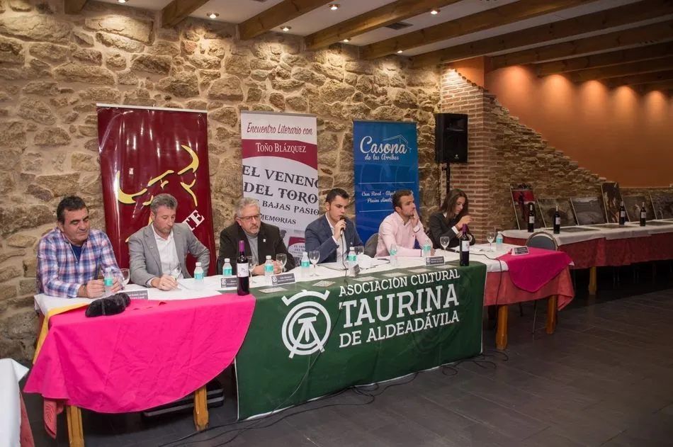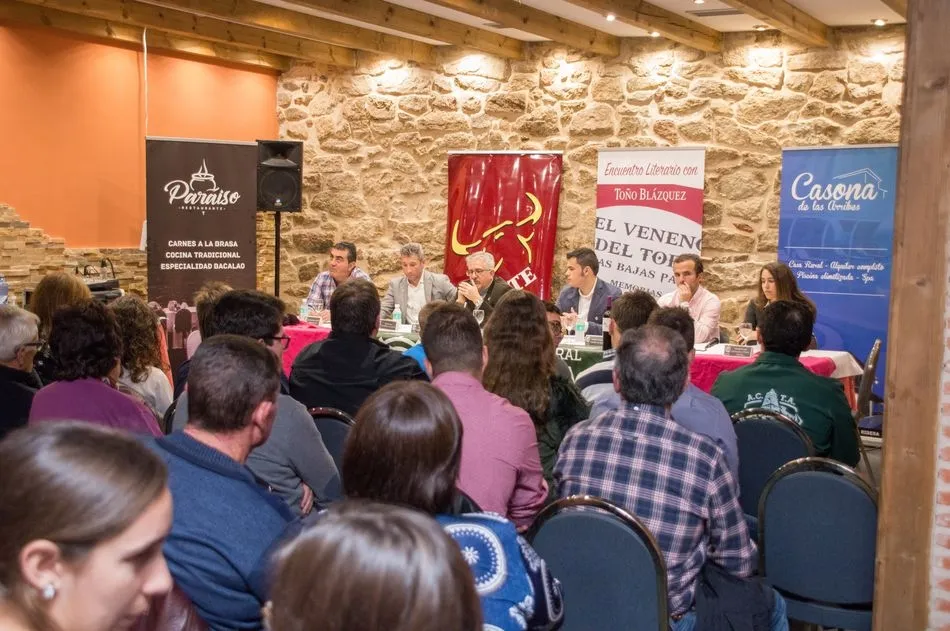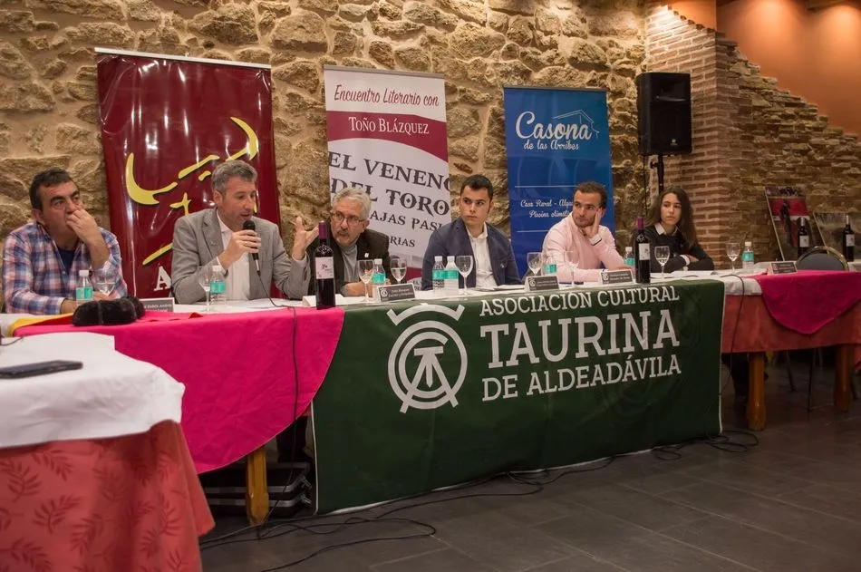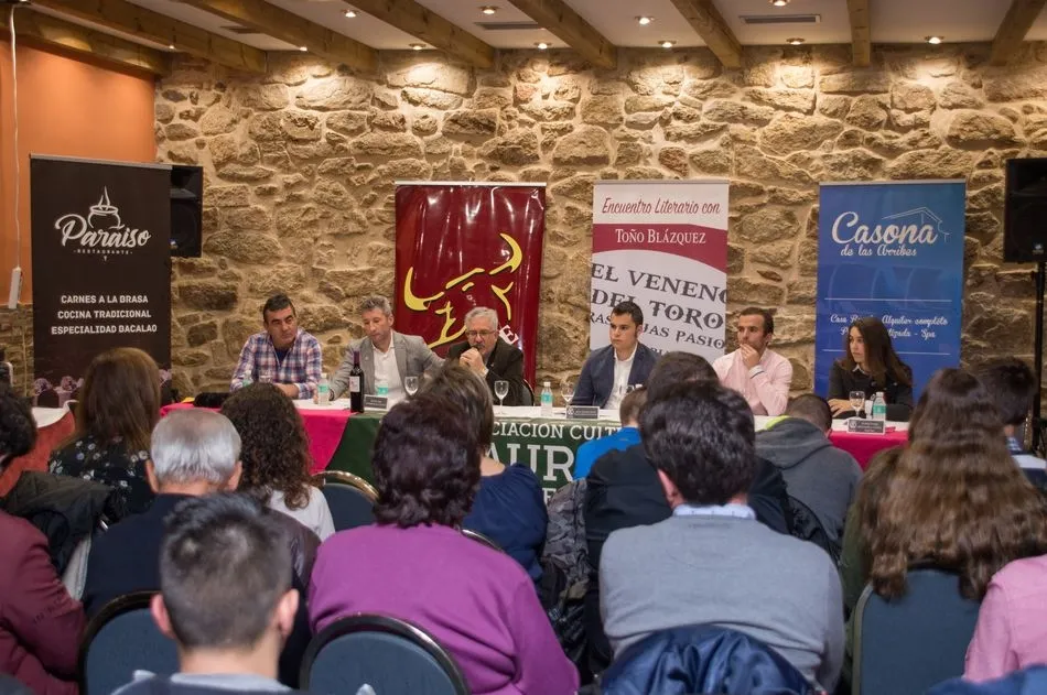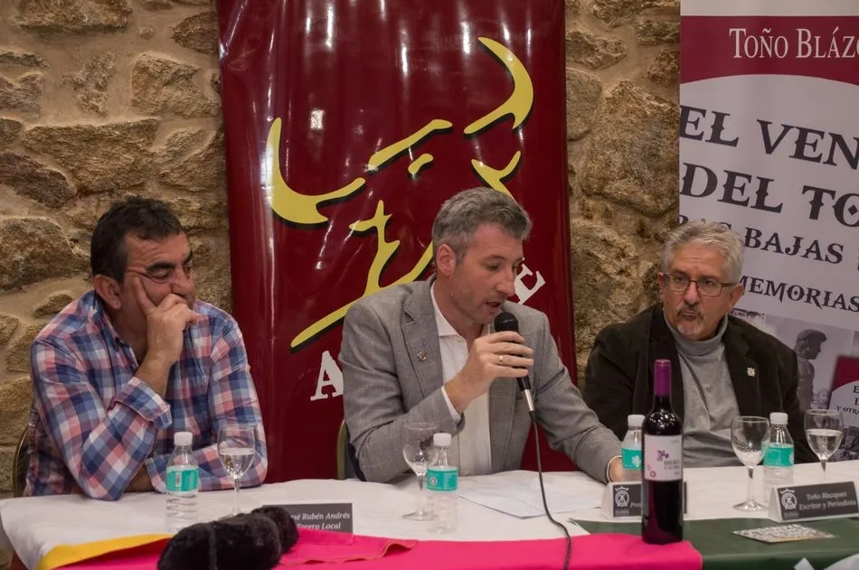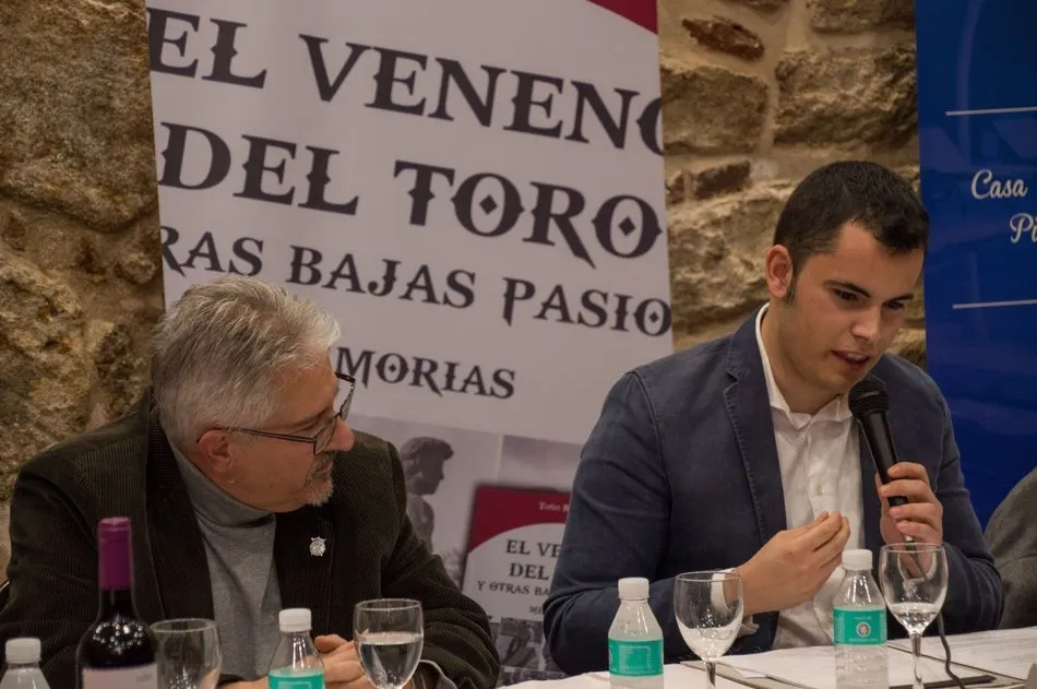 El escritor Toño Blázquez presentó en el acto su libro El veneno del toro y otras bajas pasiones. Memorias, obra que lleva a los aficionados por toda la provincia, ofreciendo encuentros literarios sobre la tauromaquia salmantina de los años 80-90, reflexionando sobre los momentos actuales y delicados por los que atraviesa la fiesta de los toros y que, sin embargo, encuentra en los núcleos rurales su abrigo más tradicional y valioso.