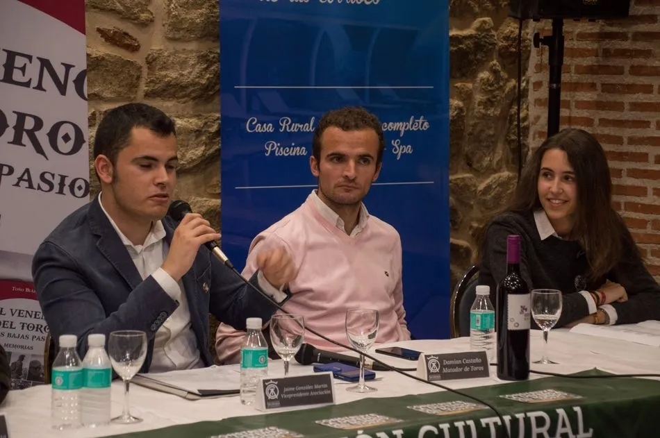 Intervinieron en la tertulia, que estuvo muy bien organizada y decorada al detalle por la Asociación, Toño Blázquez, el matador de toros Damián Castaño, José Rubén, el torero del pueblo y socio de honor del colectivo, Ramón Rey (presidente de CARTE), experto en correr encierros de ?gran cilindrada?, como los de Pamplona o San Sebastián de los Reyes y presidente de la Asociación de recortadores de España, y Noelia Crespo, joven aficionada e incipiente escritora taurina.