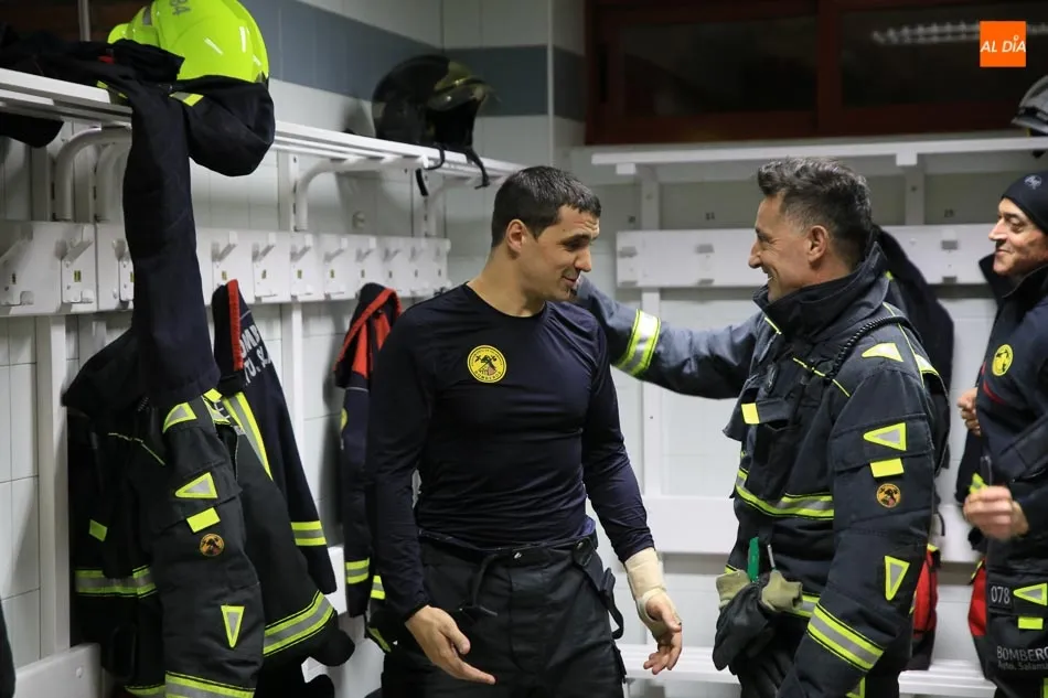 Aunque en estos días de fiesta también pueden ocurrir accidentes, incendios, personas que necesitan ser rescatadas, el espíritu navideño no está reñido con el servicio a la ciudadanía y, aunque no haya podido ser acompañados por familiares, todos han podido disfrutar de una cena especial de Nochebuena, como es el caso de los 13 bomberos de guardia del Servicio de Prevención y Extinción de Incendios y Salvamento de Salamanca, que vuelven a compartir la Navidad como su ?segunda familia?.