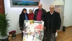 La Federación de Jubilados de la zona de Alba de Tormes ha hecho entrega de la cesta de Navidad a Juan Bautista, portador de la papeleta premiada. El presidente, Enrique Sánchez, entregó la cesta al vecino de Monterrubio de la Sierra, que también estuvo acompañado de María Dolores González, presidenta de la Asociación de Mayores de Alba,