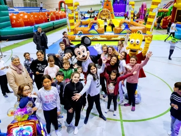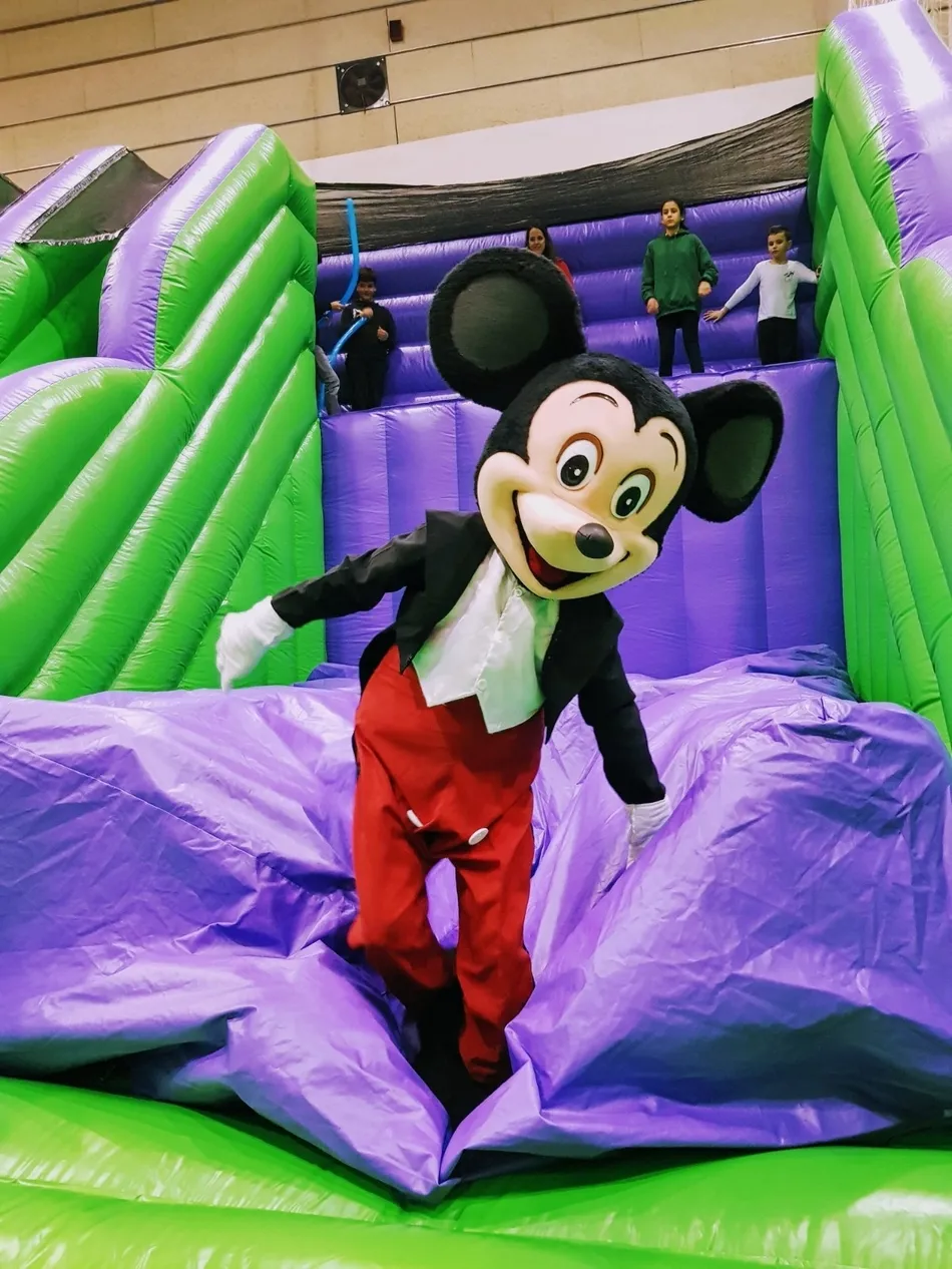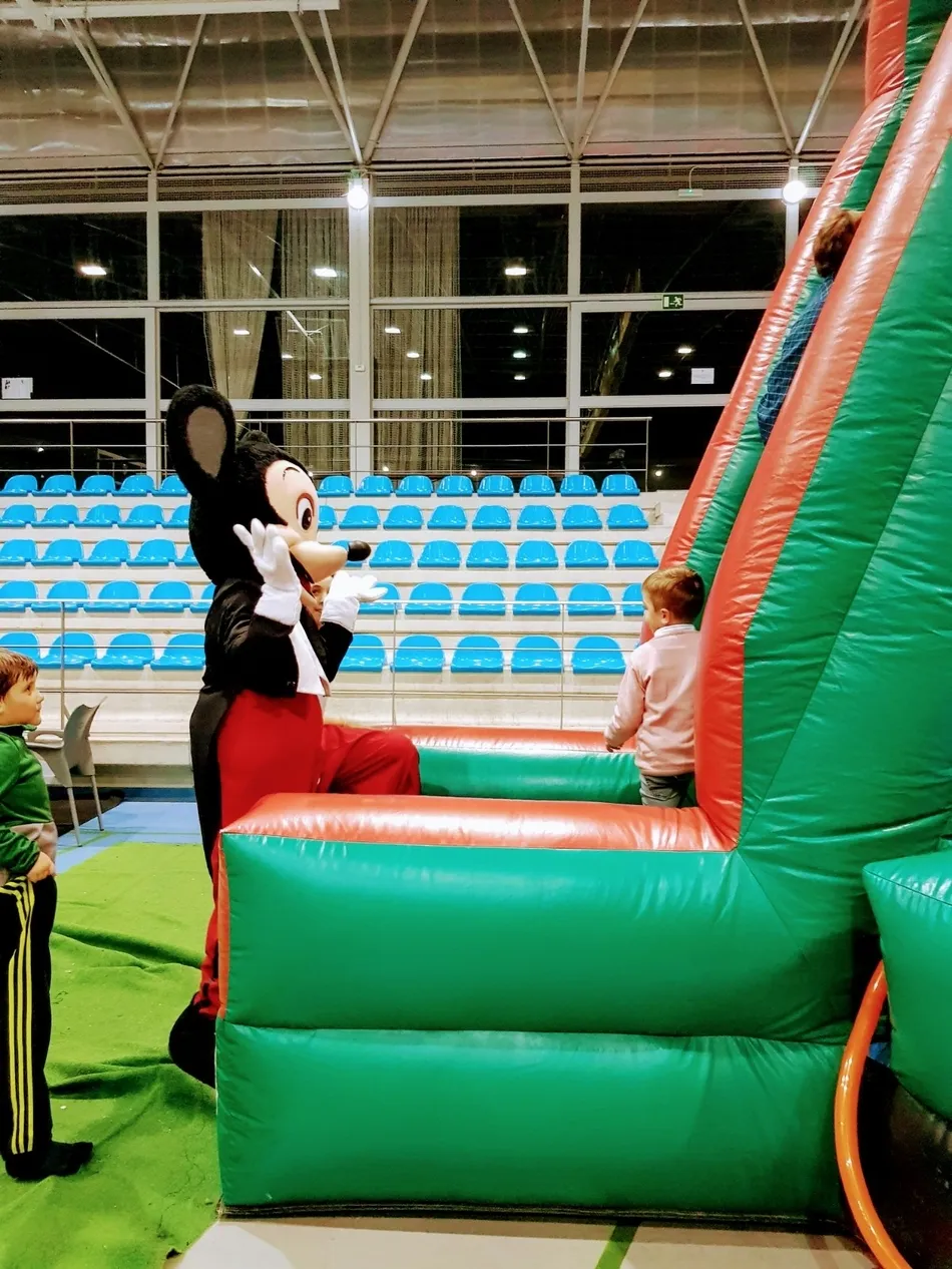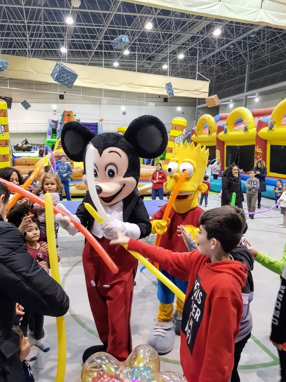 El Parque Infantil Navilandia tuvo abiertas sus puertas en la tarde del Día de Navidad para recibir la visita de Mickey, quién compartió un buen rato con los chavales que había por allí, a los que repartió globos, además de animarse a subir a varios de los hinchables. Junto a Mickey, también se pasó por el Parque Bart Simpson.